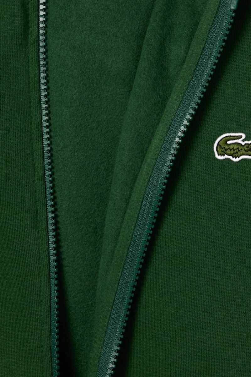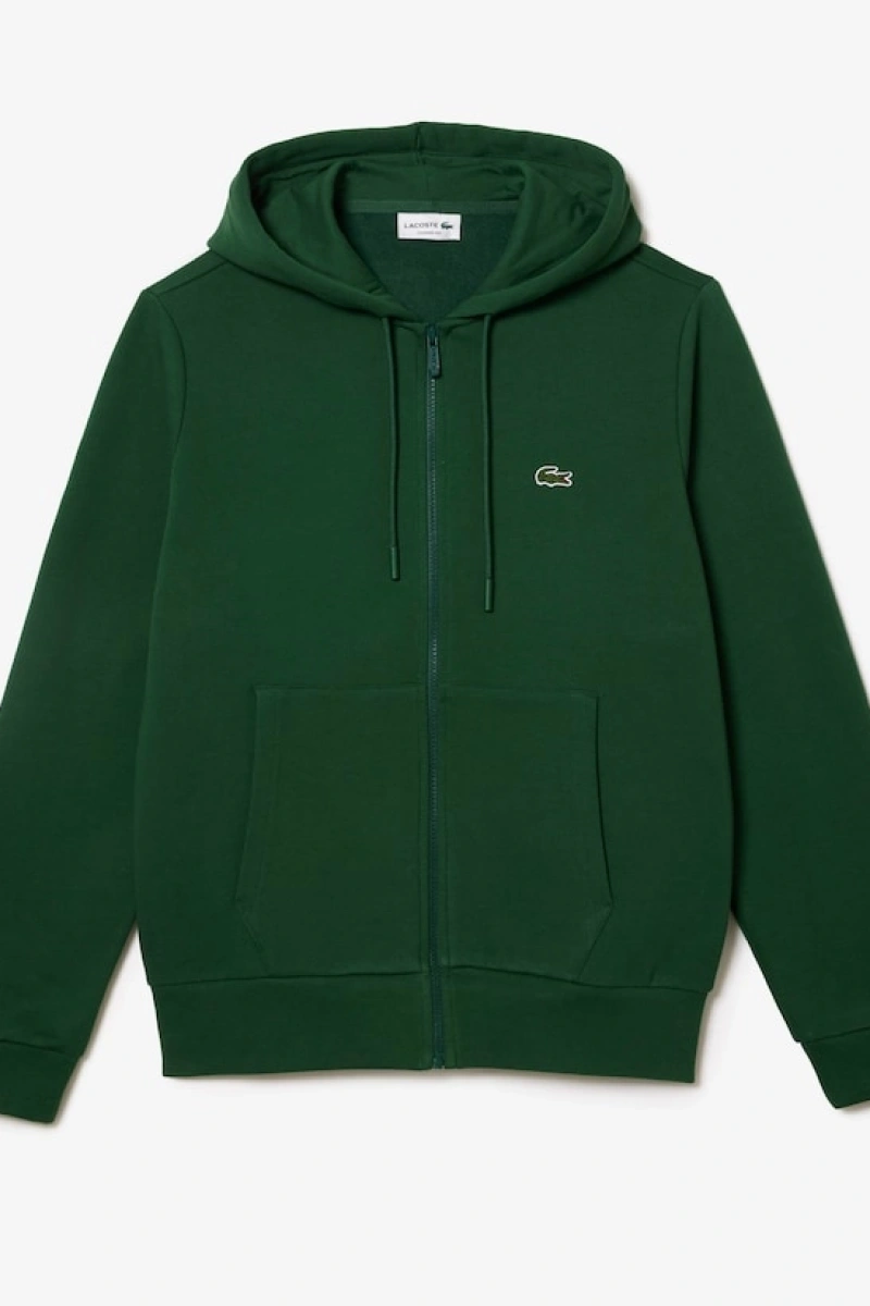 Erkek Fermuarlı Double Face Pike Kapüşonlu Polar Sweatshirt Haki Yeşil