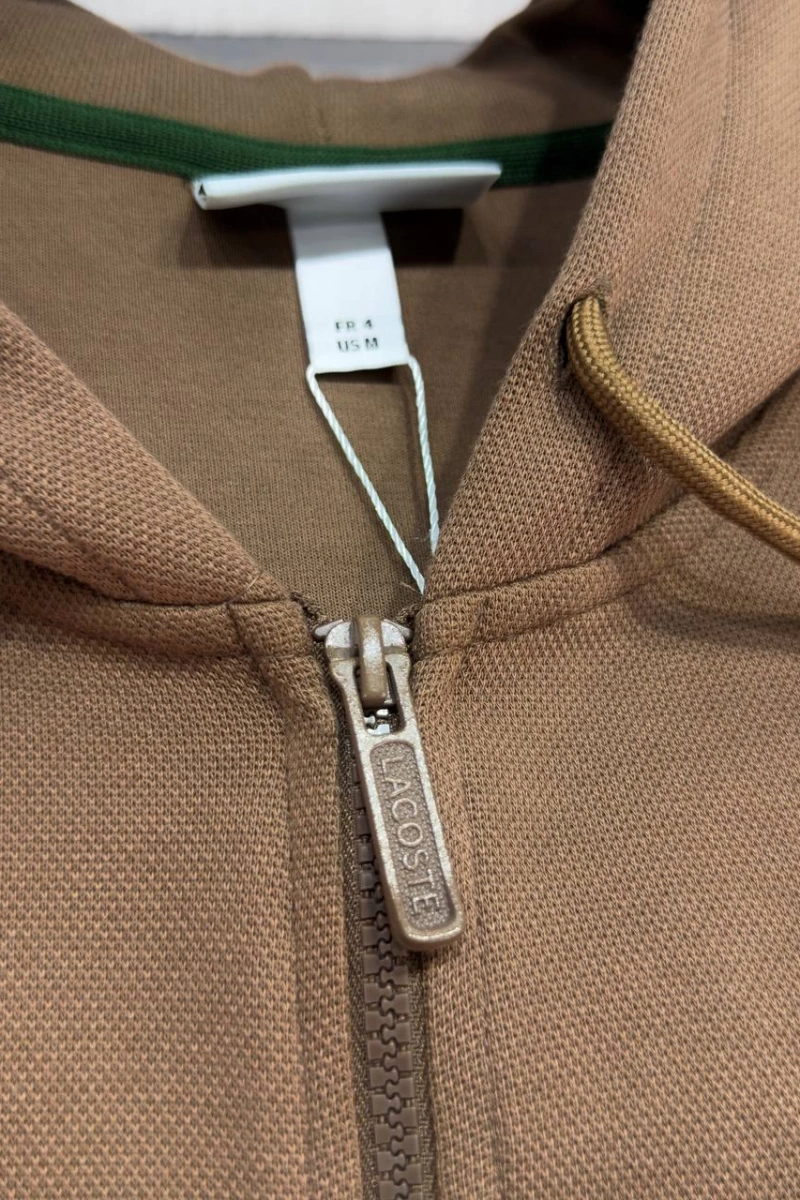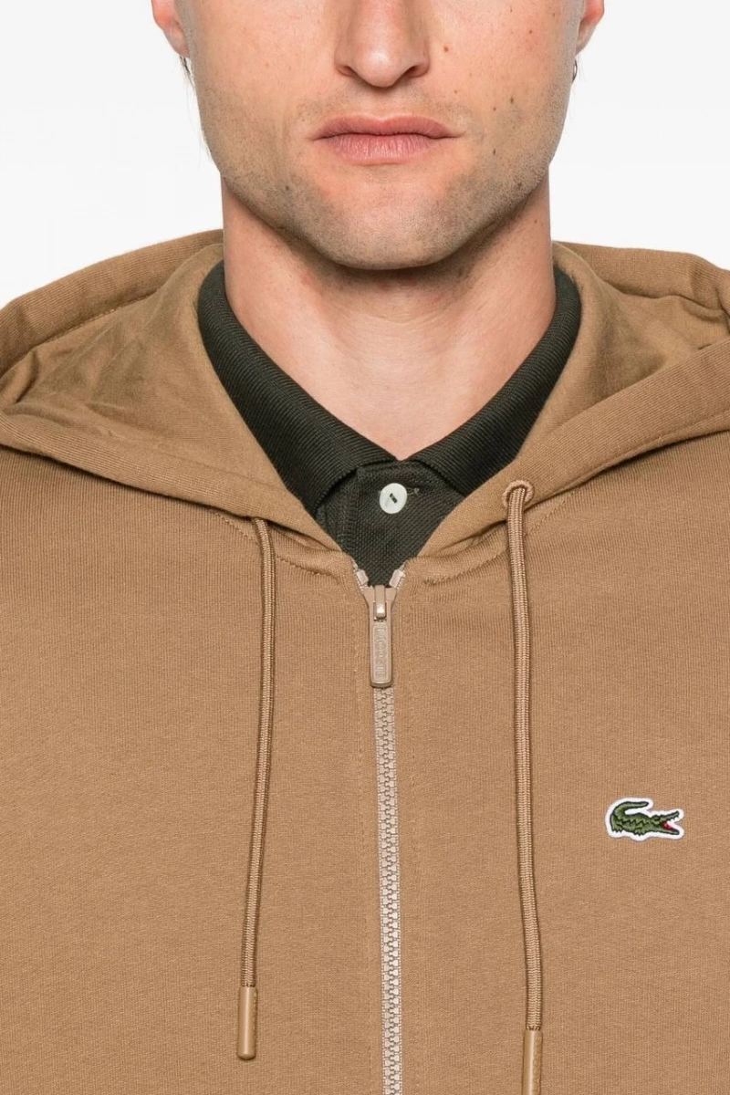 Erkek Fermuarlı Double Face Pike Kapüşonlu Polar Sweatshirt Kahverengi