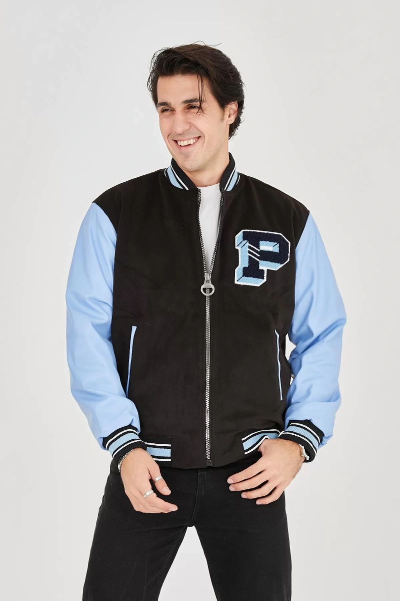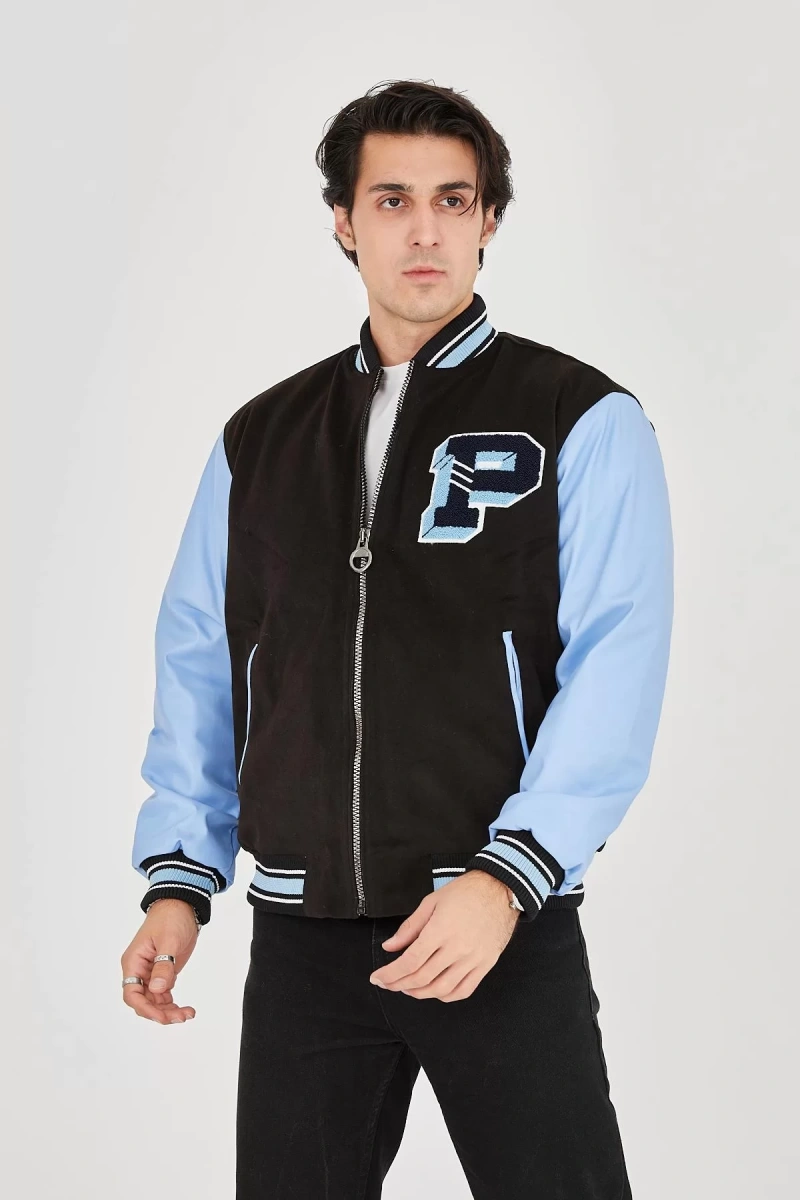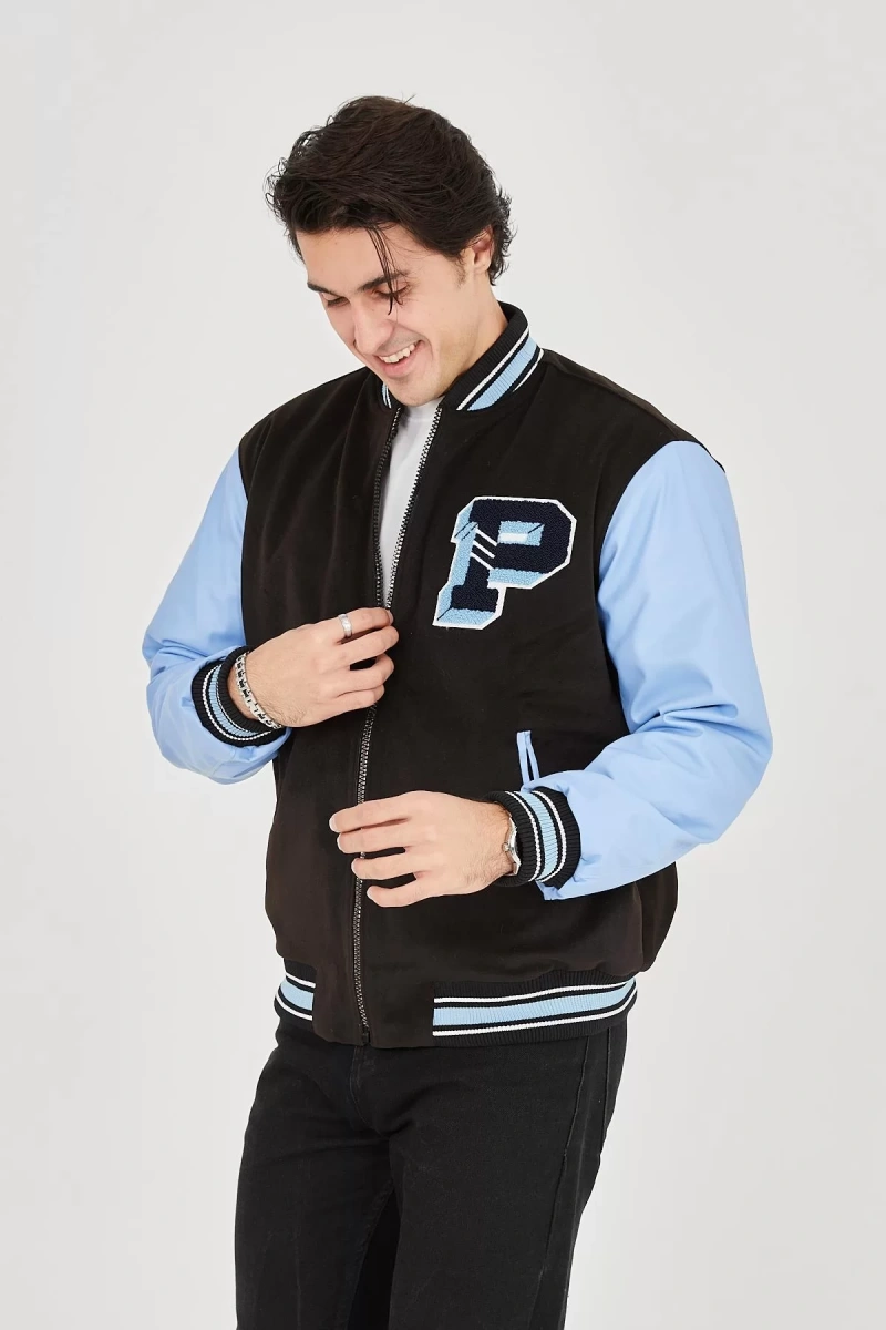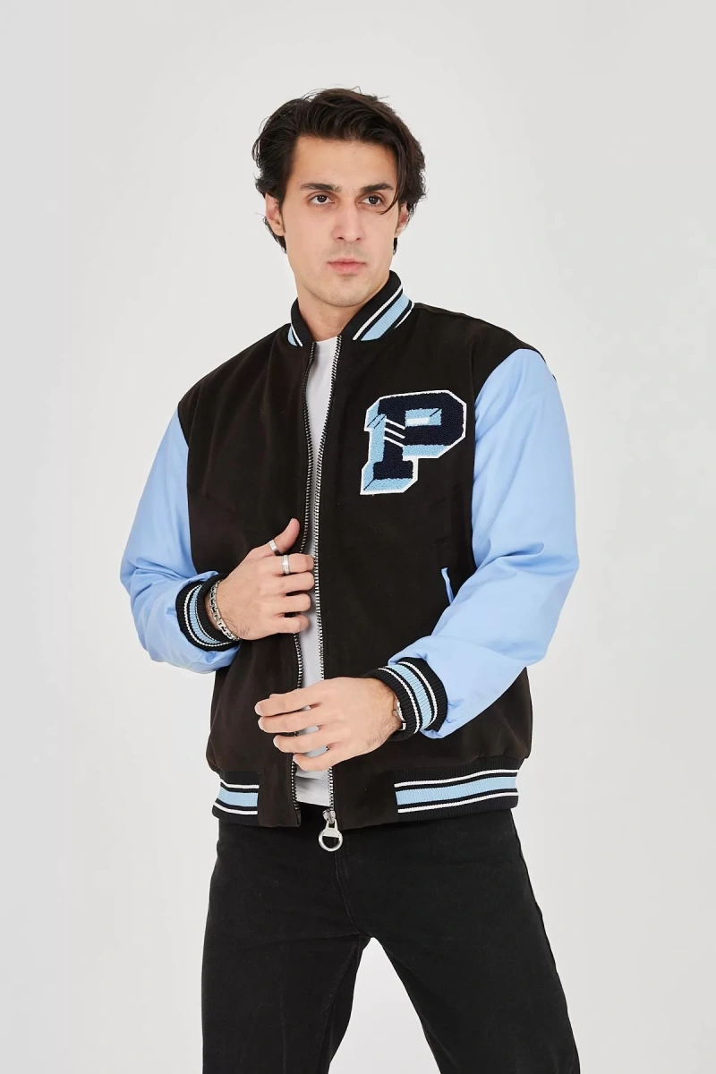 Erkek İçten Elyaf ve Astarlı Kolları Suni Deri Ceket - Mavi