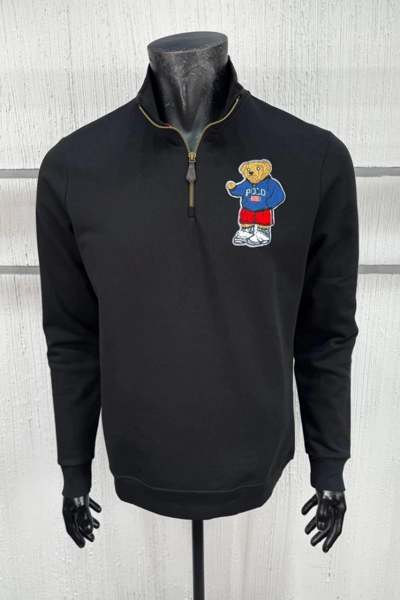 Erkek Likralı Dıagonel 3 İplik Kumaş Fermuarlı Dik Yaka Sweatshirt Siyah