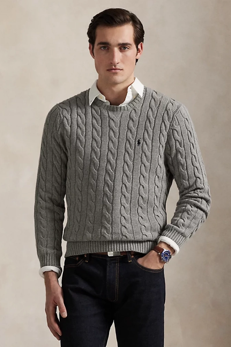 Bu pamuklu kazak, Polo'nun en ikonik iki tasarım öğesini bir araya getiriyor: dokulu örgü motif ve imzamız olan işlemeli Pony.