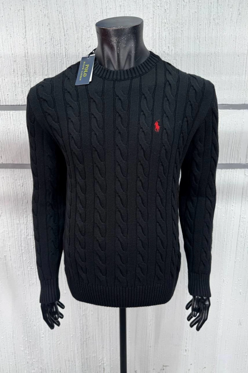 Erkek Örgü Motif Pamuklu Kazak Siyah