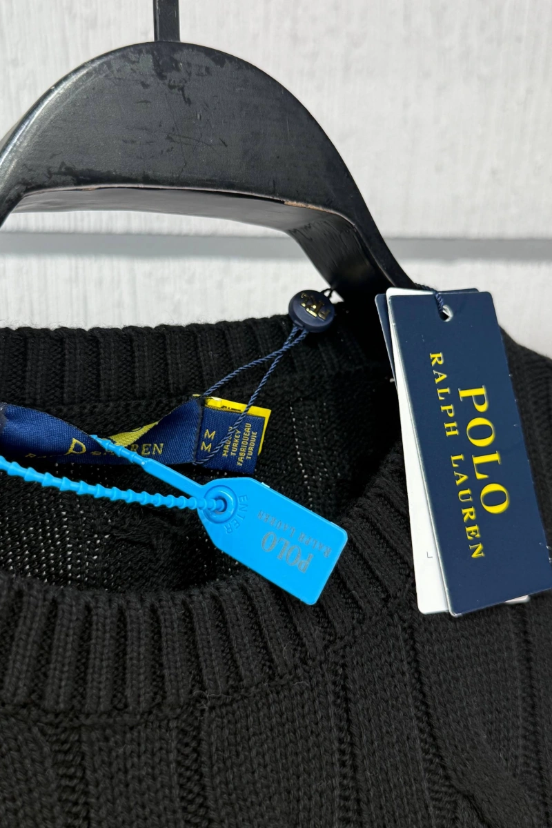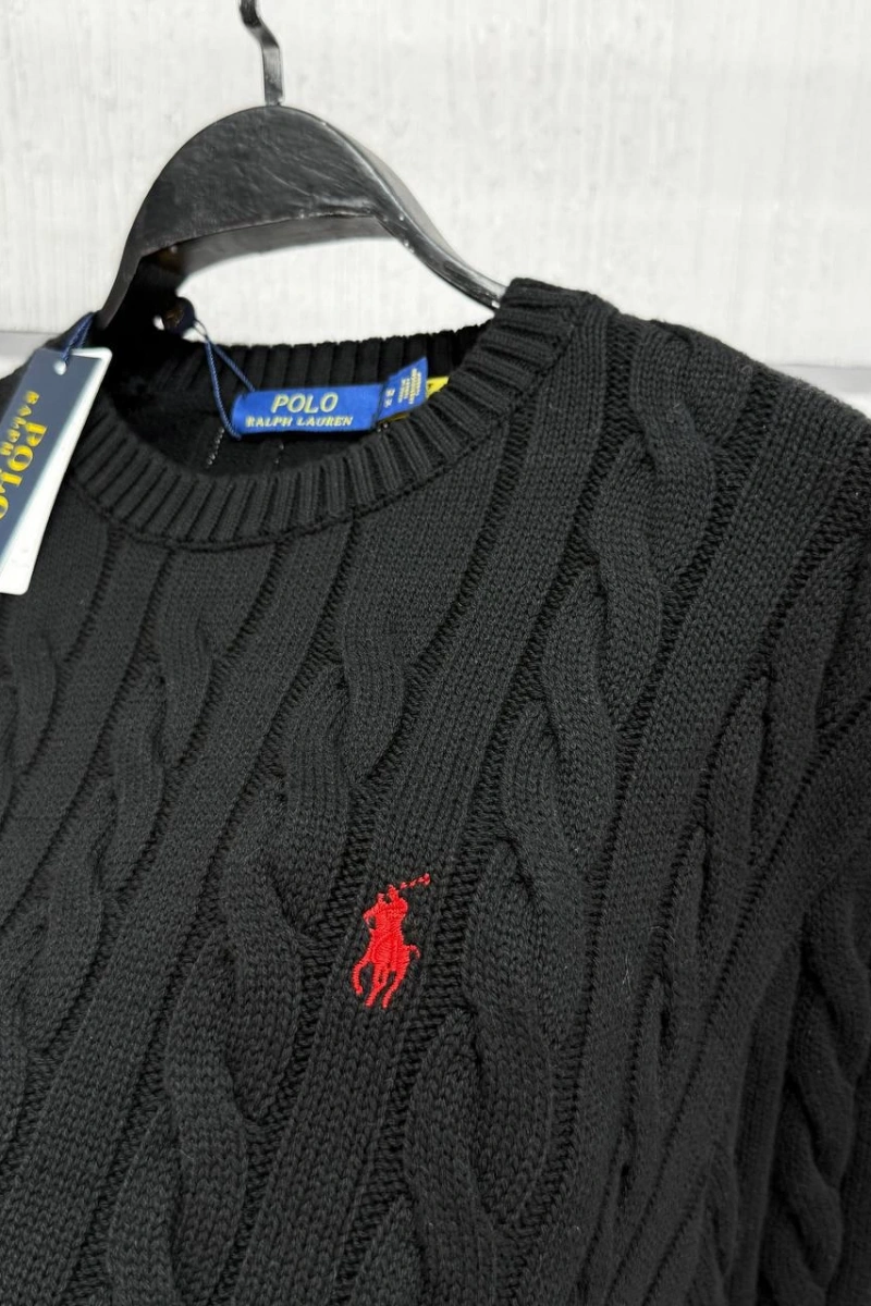 Bu pamuklu kazak, Polo'nun en ikonik iki tasarım öğesini bir araya getiriyor: dokulu örgü motif ve imzamız olan işlemeli Pony.
