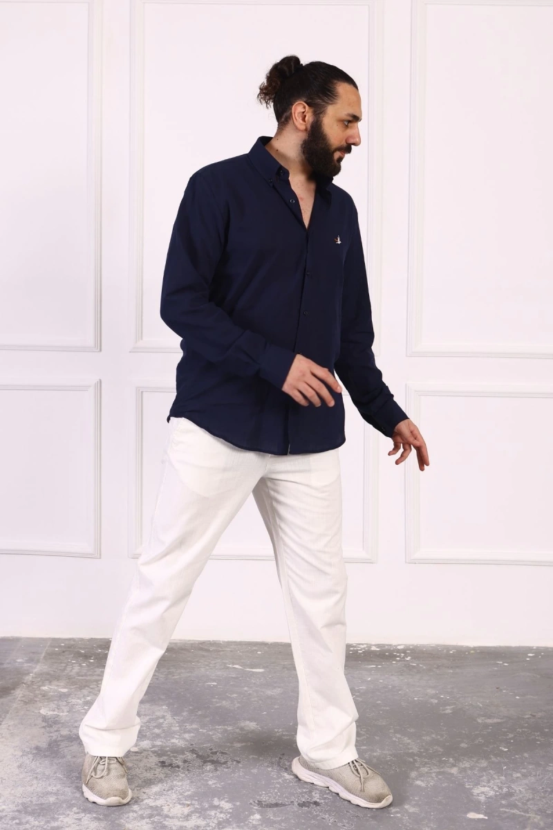 Erkek Pamuklu Keten Rahat Kesim Terletmez Kumaş Bağcıklı Pantolon, hem şık hem de rahat bir seçenek arayan erkekler için ideal bir tercihtir.