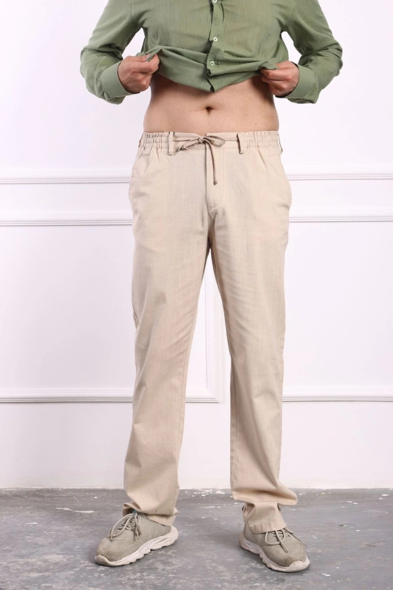 Erkek Pamuklu Keten Rahat Kesim Terletmez Kumaş Bağcıklı Pantolon, Tam12den Home markasıyla şıklığı ve konforu bir araya getiriyor.