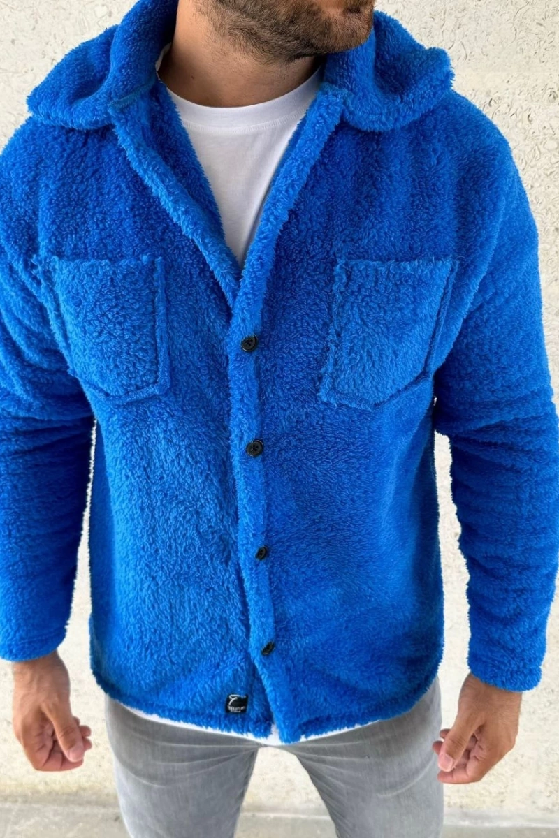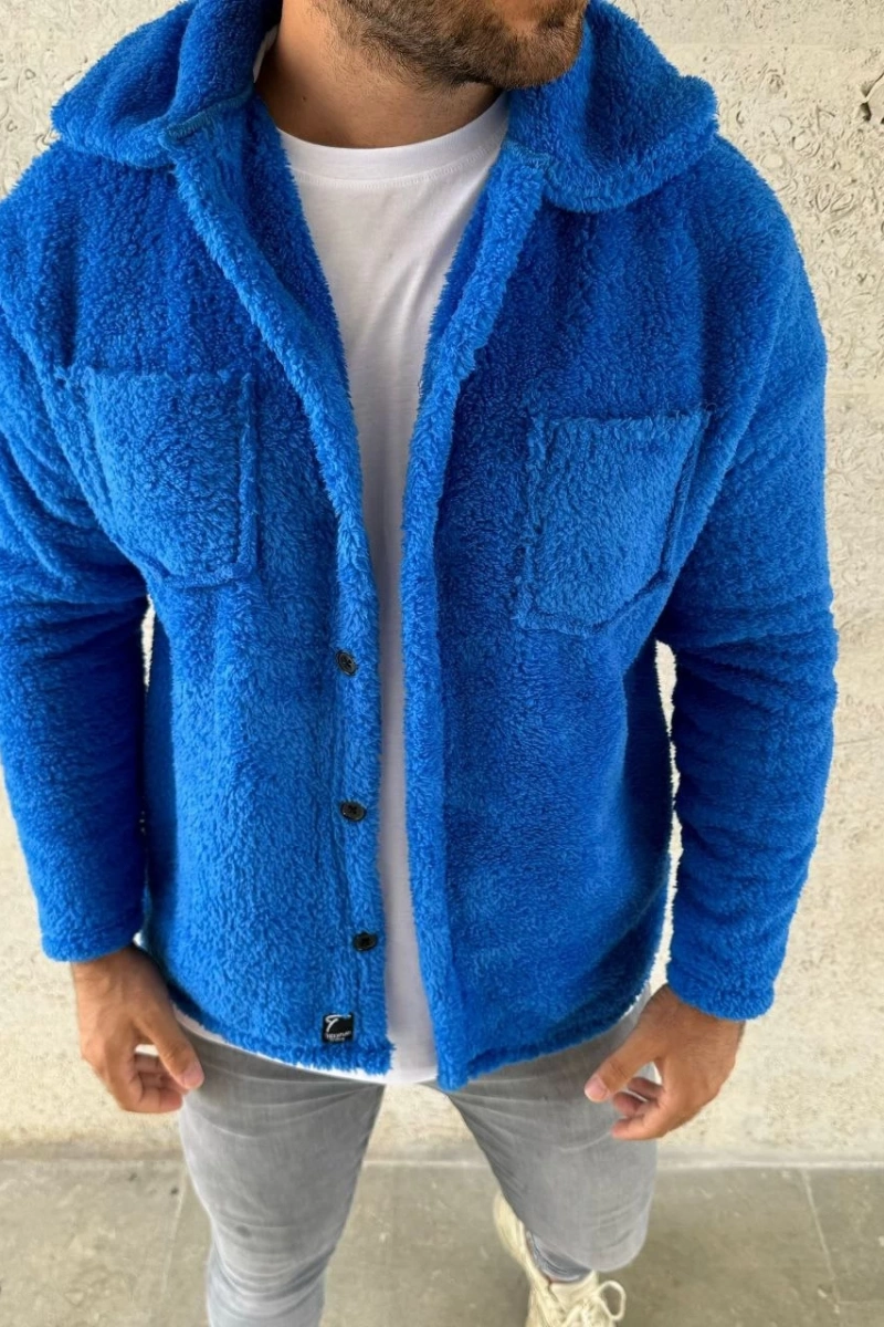 Erkek Pelüş Polar Hırka Gömlek – Yakalı, İlik Düğmeli, Göğüs Cepli, Yumuşak Dokulu Kışlık Regular Fit Rahat Günlük Model - Saks Mavisi