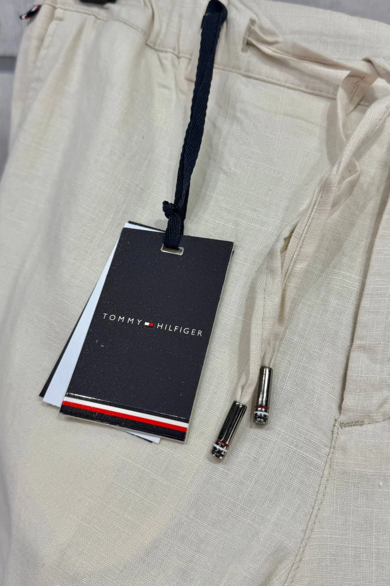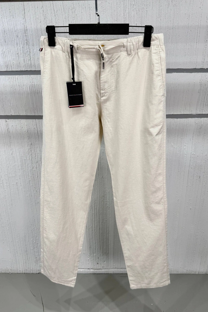 Tommy Hilfiger Erkek Premium Keten Pantolon - Bej