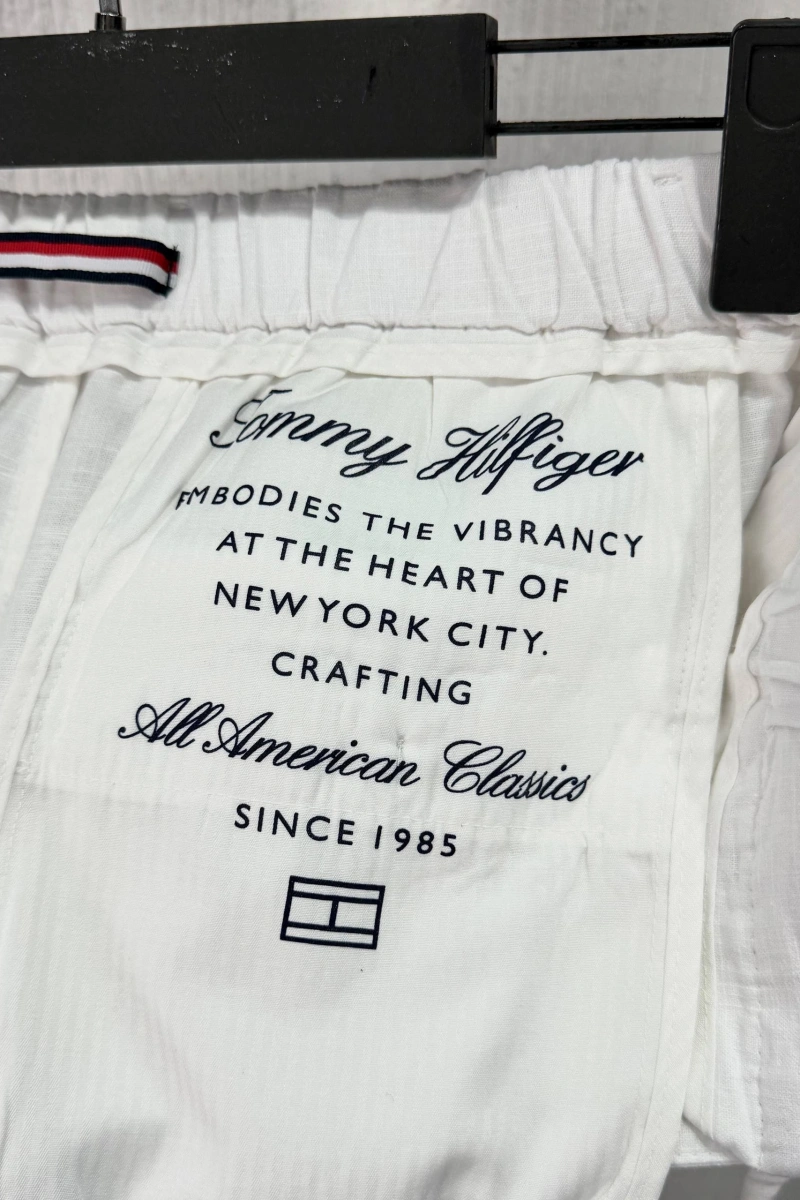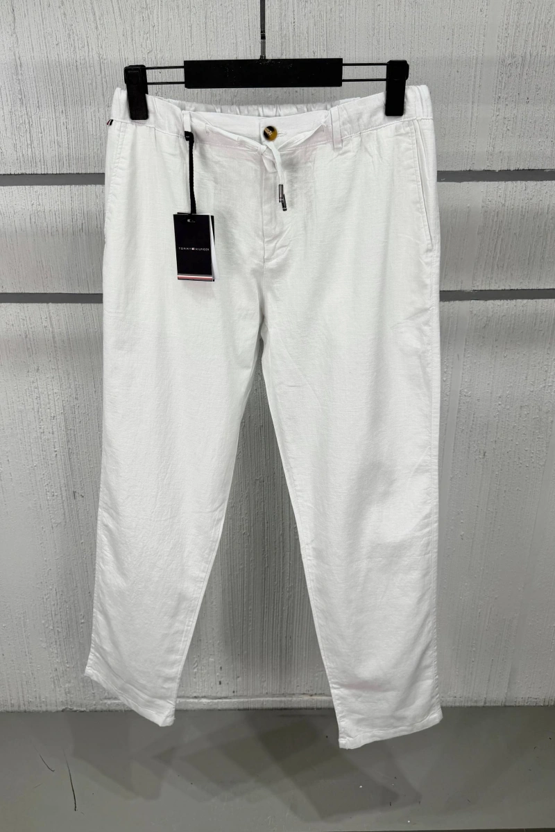 Tommy Hilfiger Erkek Premium Keten Pantolon - Beyaz