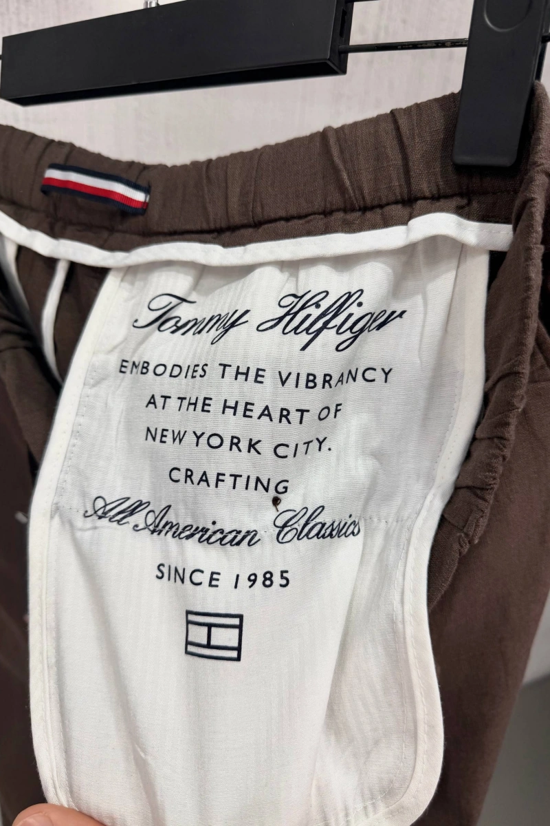Tommy Hilfiger Erkek Premium Keten Pantolon - Kahverengi