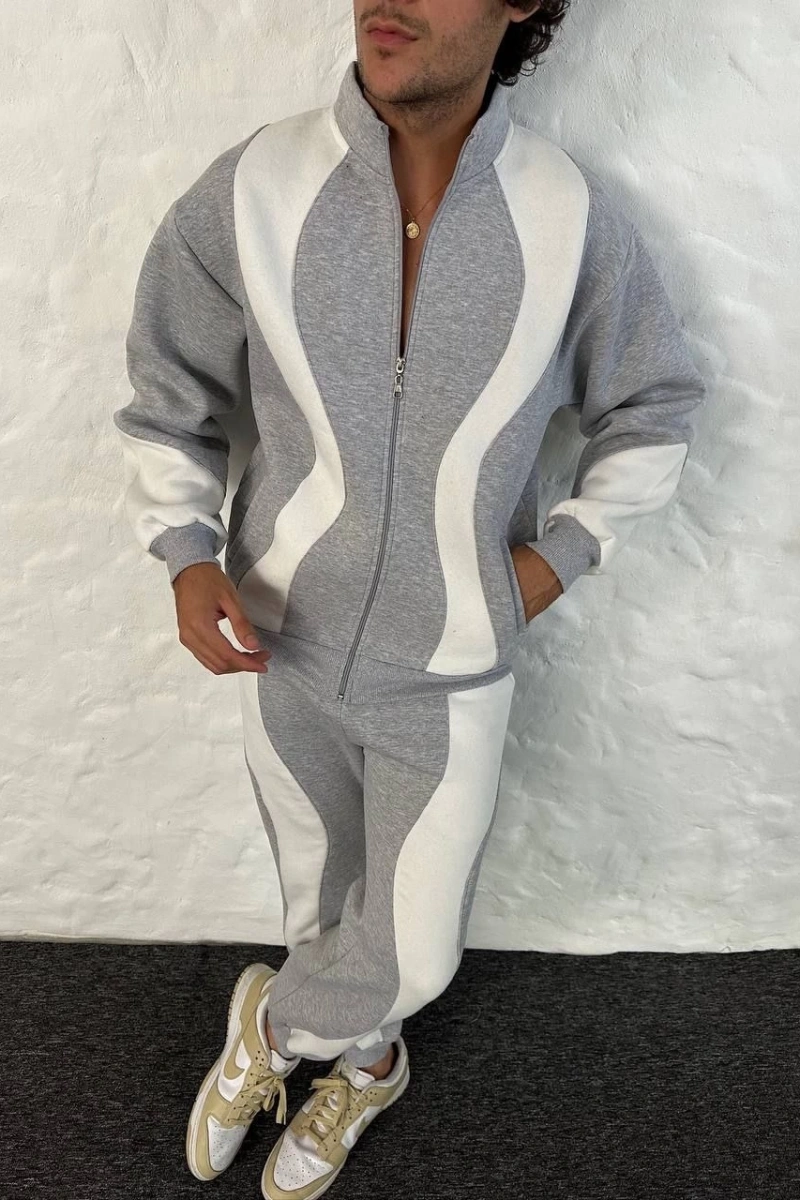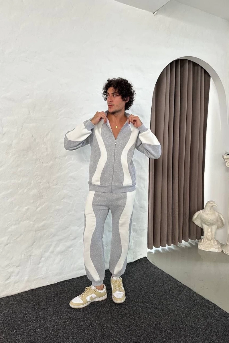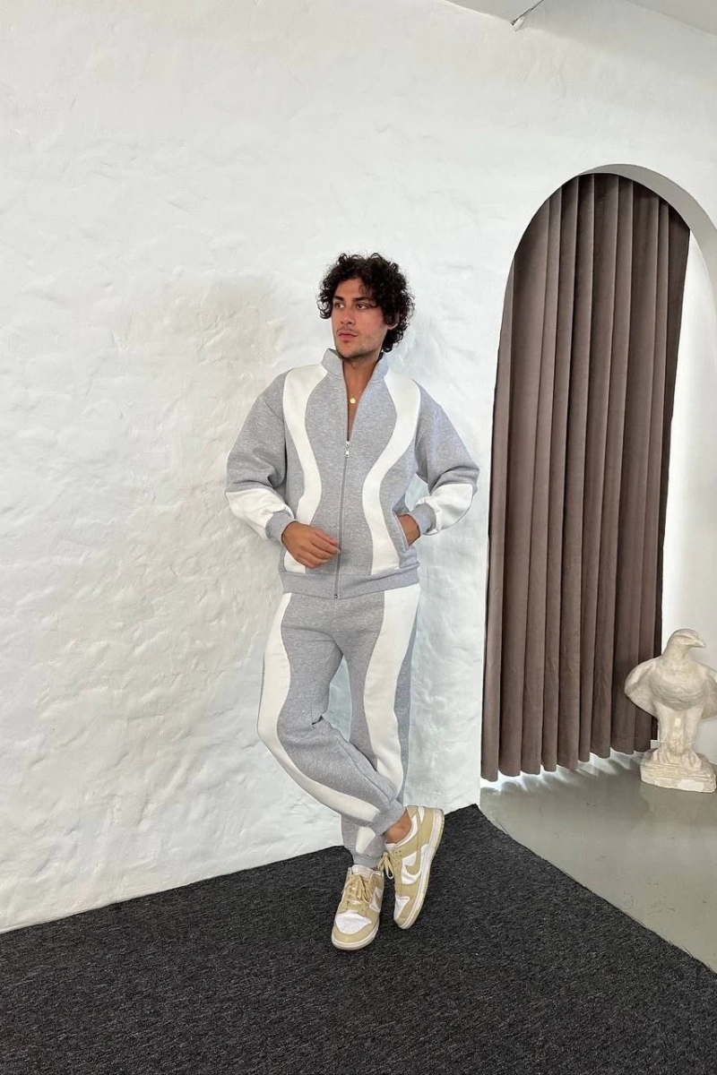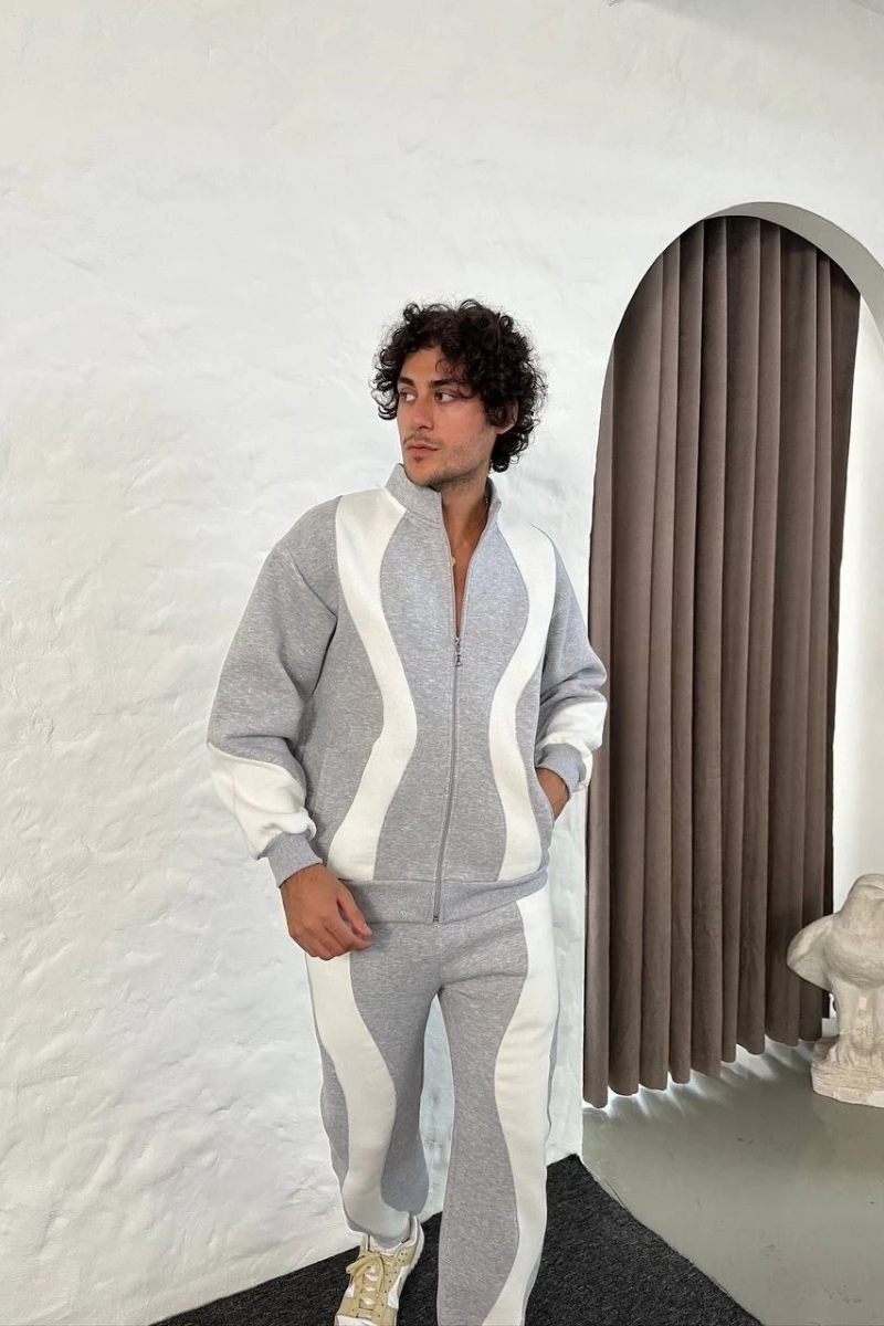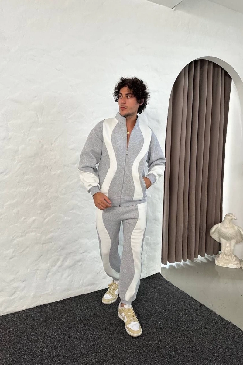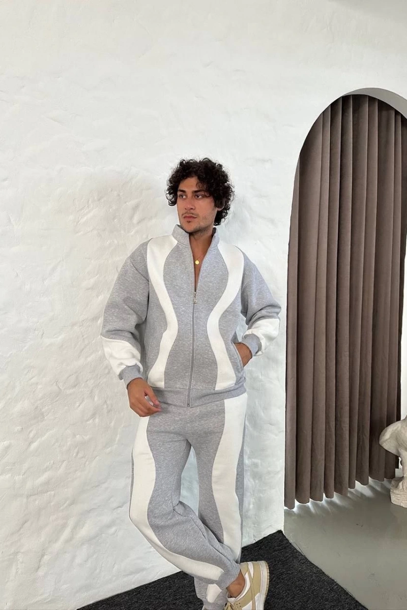 Erkek Premium Parçalı Eşofman Takım - Dik Yaka Fermuarlı Sweatshirt, - Gri