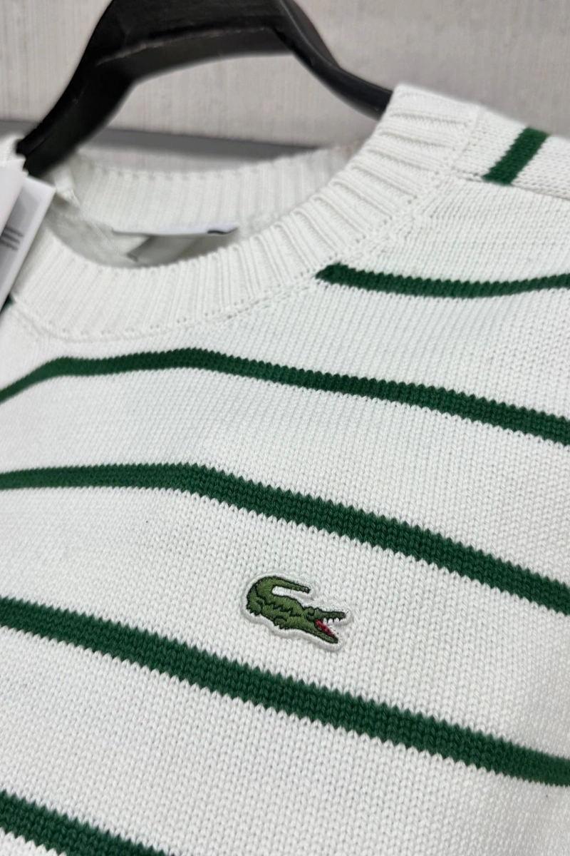 Öne çıkan renkleri ve ikonik çizgili tasarımıyla dikkat çeken kazak, bisiklet yaka yapısıyla zarif bir stil sunuyor. Rahat kumaşı, gün boyu konfor sağlarken, göğüste yer alan işlenmeli timsah logosu tasarıma ikonik bir dokunuş katıyor. Hem şıklık hem de rahatlık arayanlar için gardırobun vazgeçilmez parçaları arasında yer alıyor.