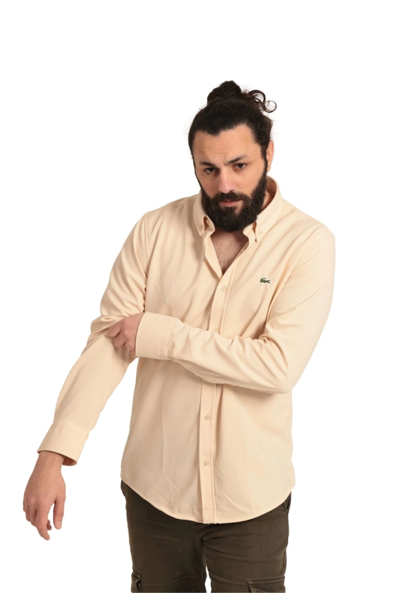 Erkek Regular Fit Non İron Buruşmaz Kumaş Likralı Gömlek Bej