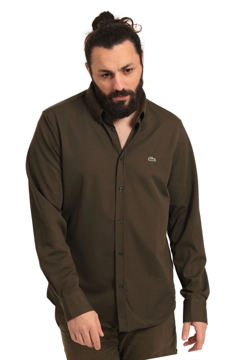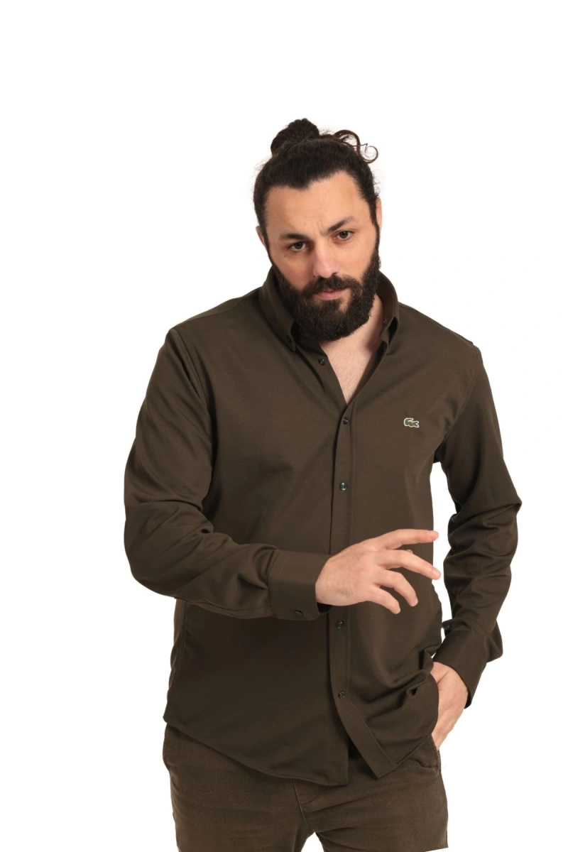 Erkek Regular Fit Non İron Buruşmaz Kumaş Likralı Gömlek Haki