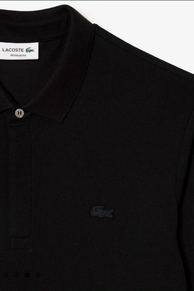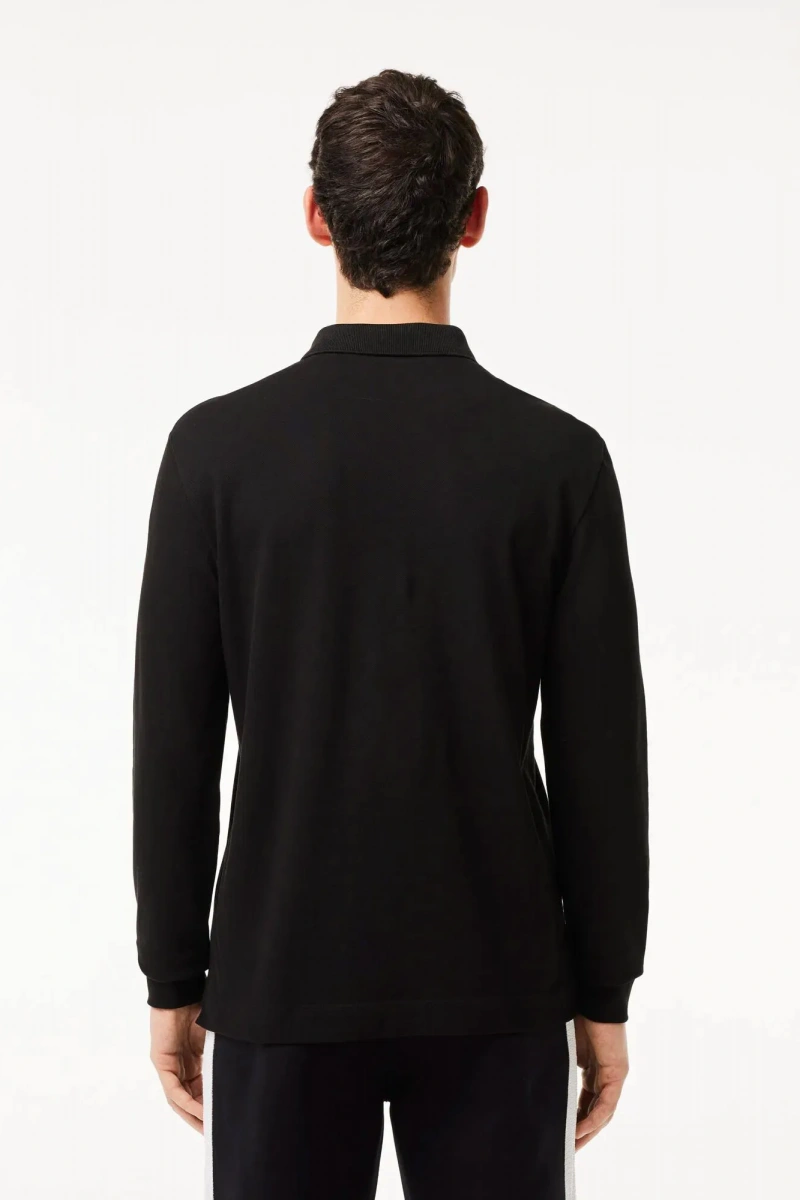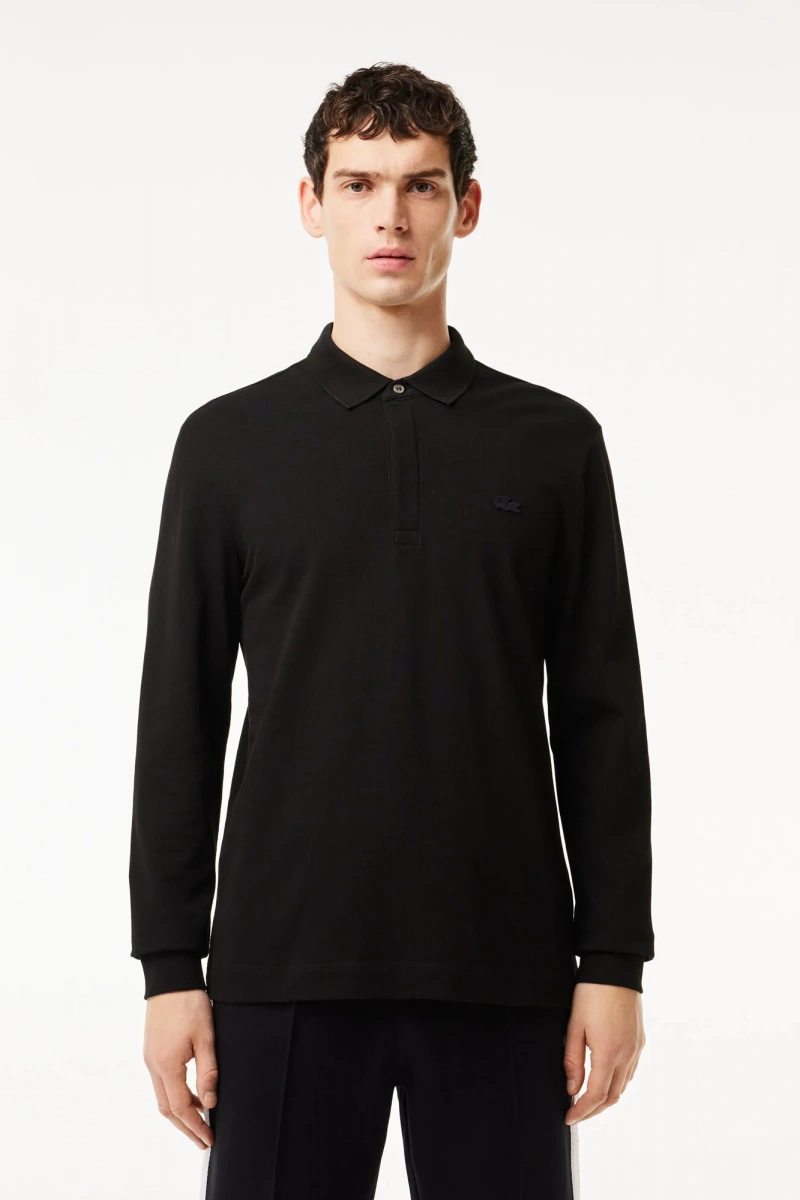 Erkek Regular Fit Uzun Kollu Siyah Pike Paris Polo