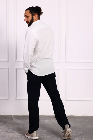 Erkek Regular Fit Yazlık Keten Gömlek Beyaz
