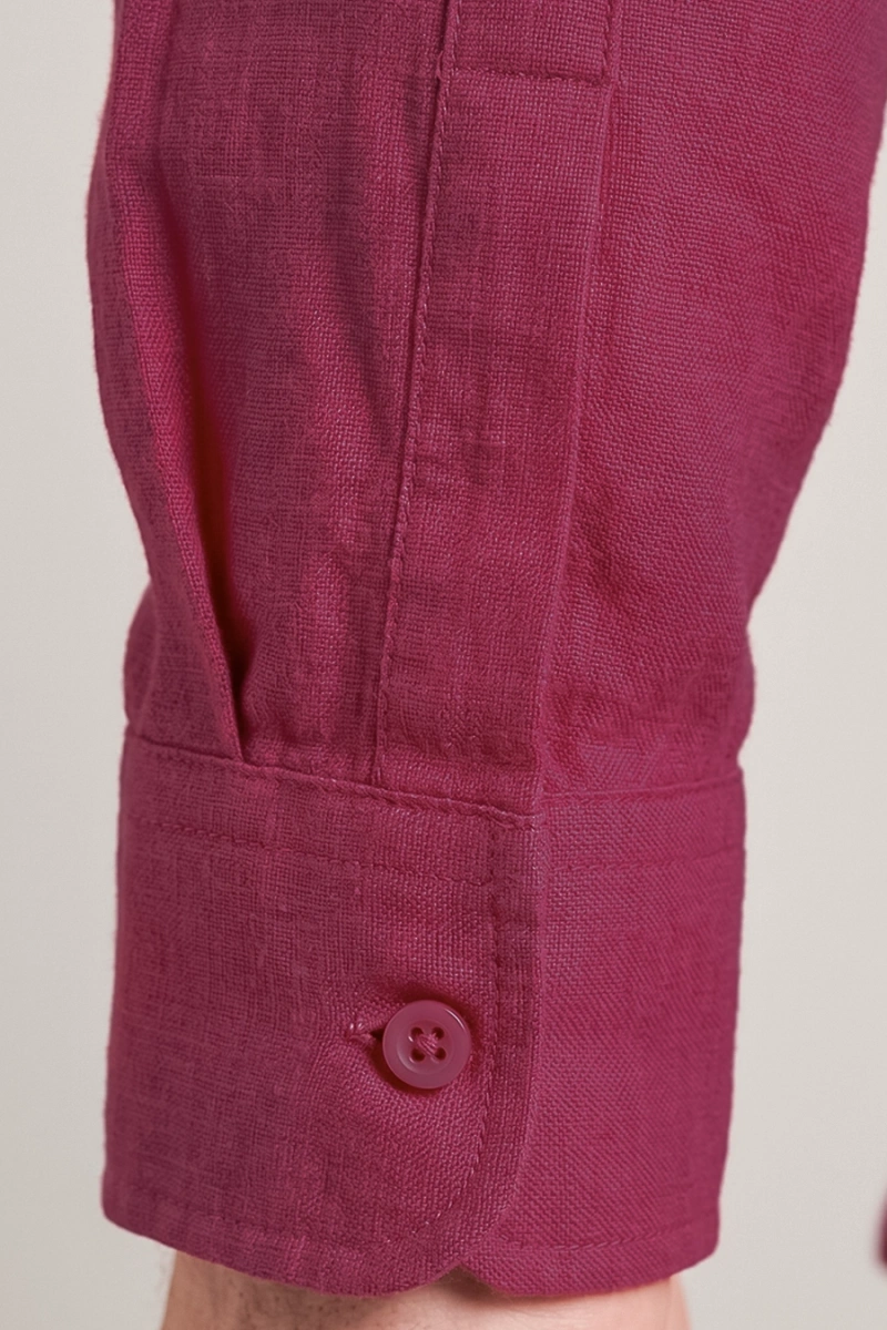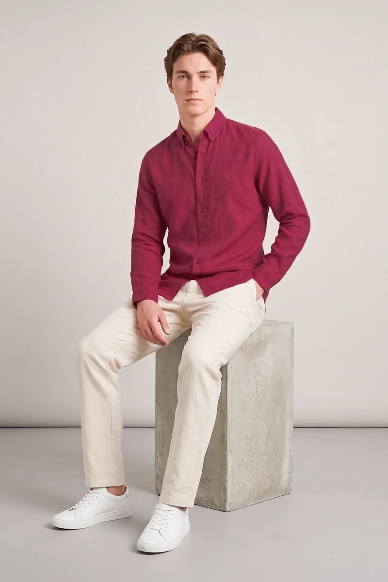 Erkek Regular Fit Yazlık Keten Gömlek Bordo