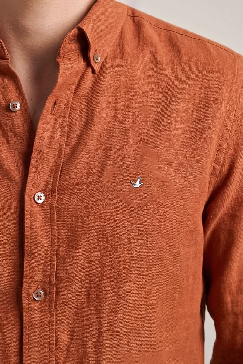 Erkek Regular Fit Yazlık Keten Gömlek Kiremit