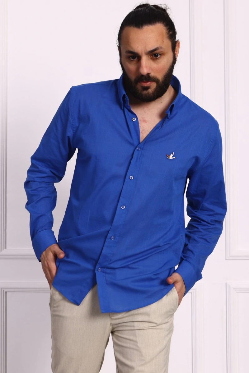 Erkek Regular Fit Yazlık Keten Gömlek Saks Mavisi