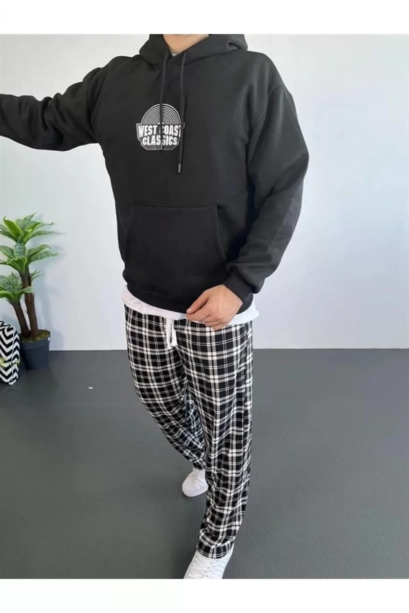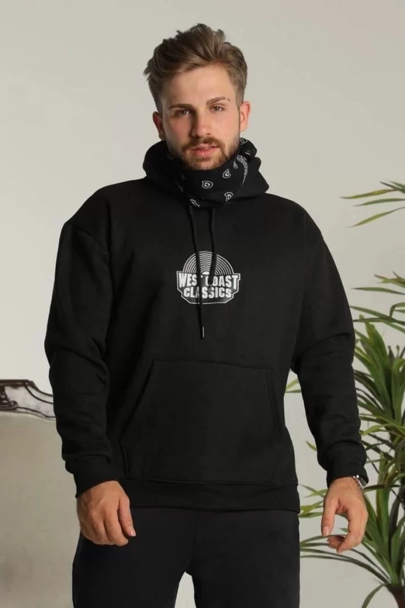Erkek Sırt Baskılı Kapüşonlu Üç İplik Oversize Sweatshirt - Siyah