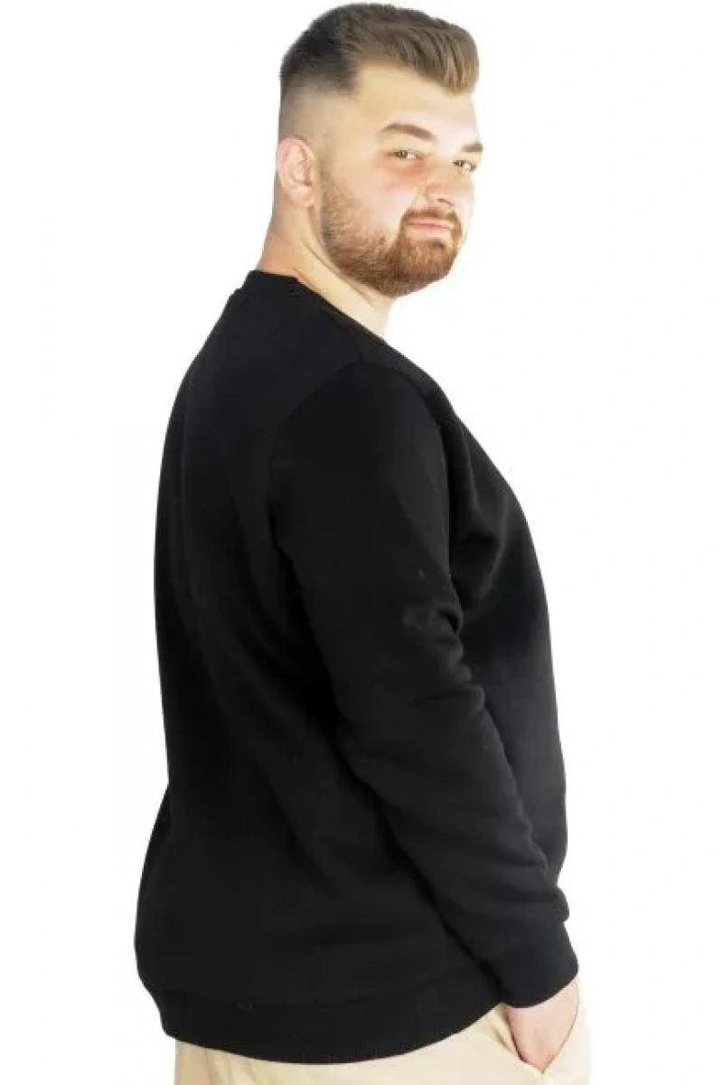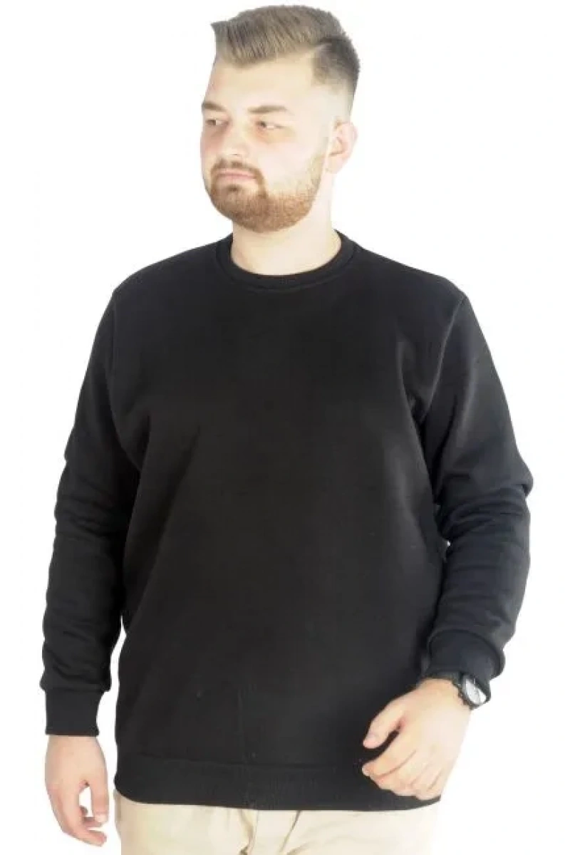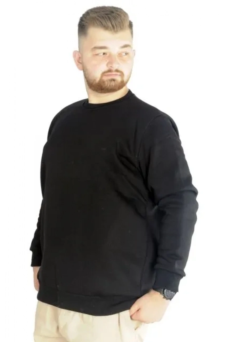Erkek Büyük Beden Sweatshirt Bisiklet Yaka Basic Siyah