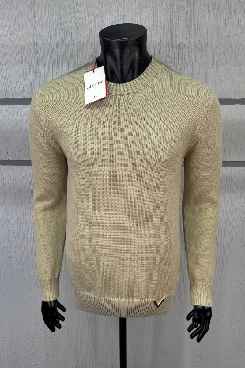 Erkek V Logolu Triko Kazak Karamel Kahve