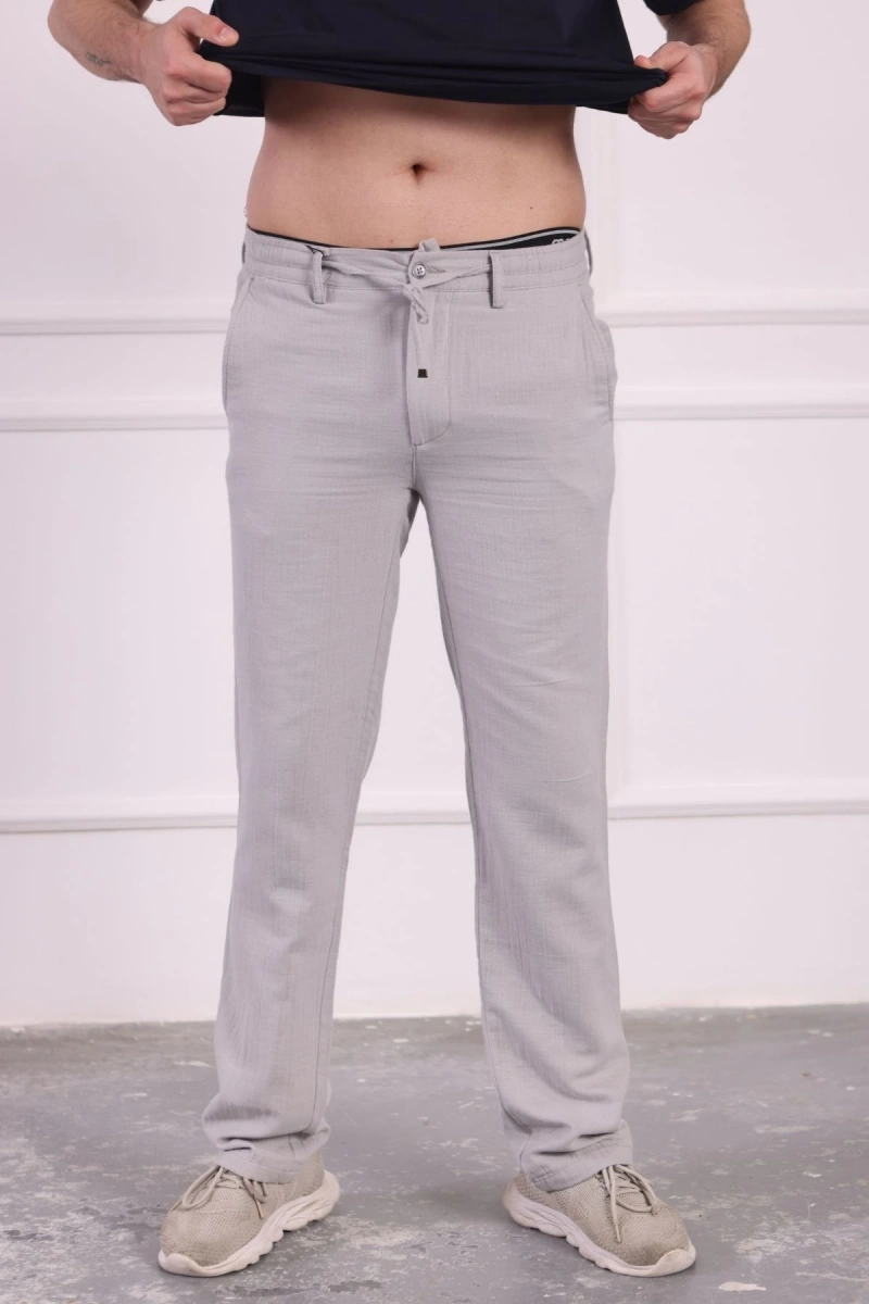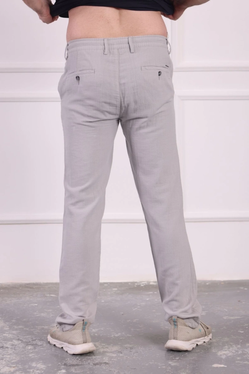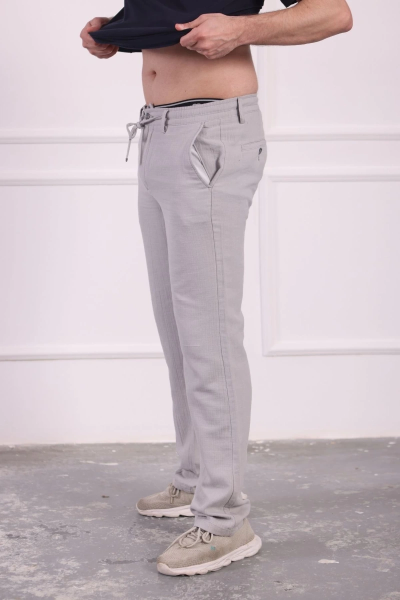 Erkek Yazlık Pamuklu Nefes Alan Kumaş Bağcıklı Pantolon Gri