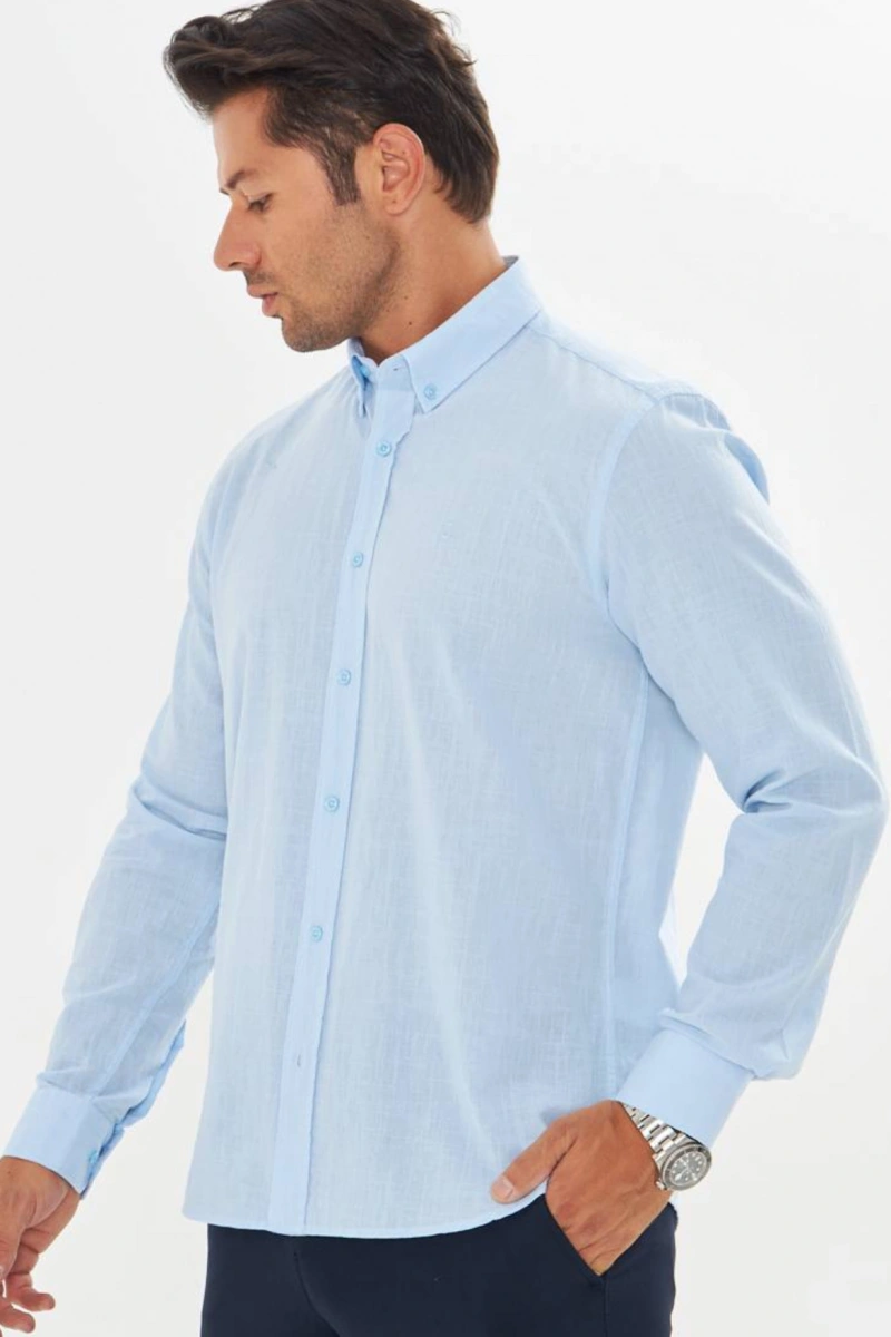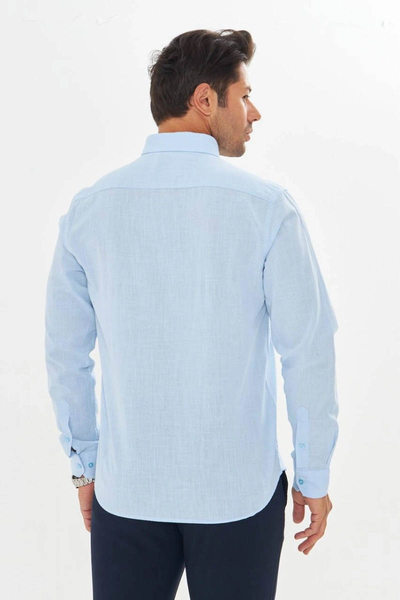Erkek Zend Club Regular Fit Yazlık Keten Gömlek Açık Mavi