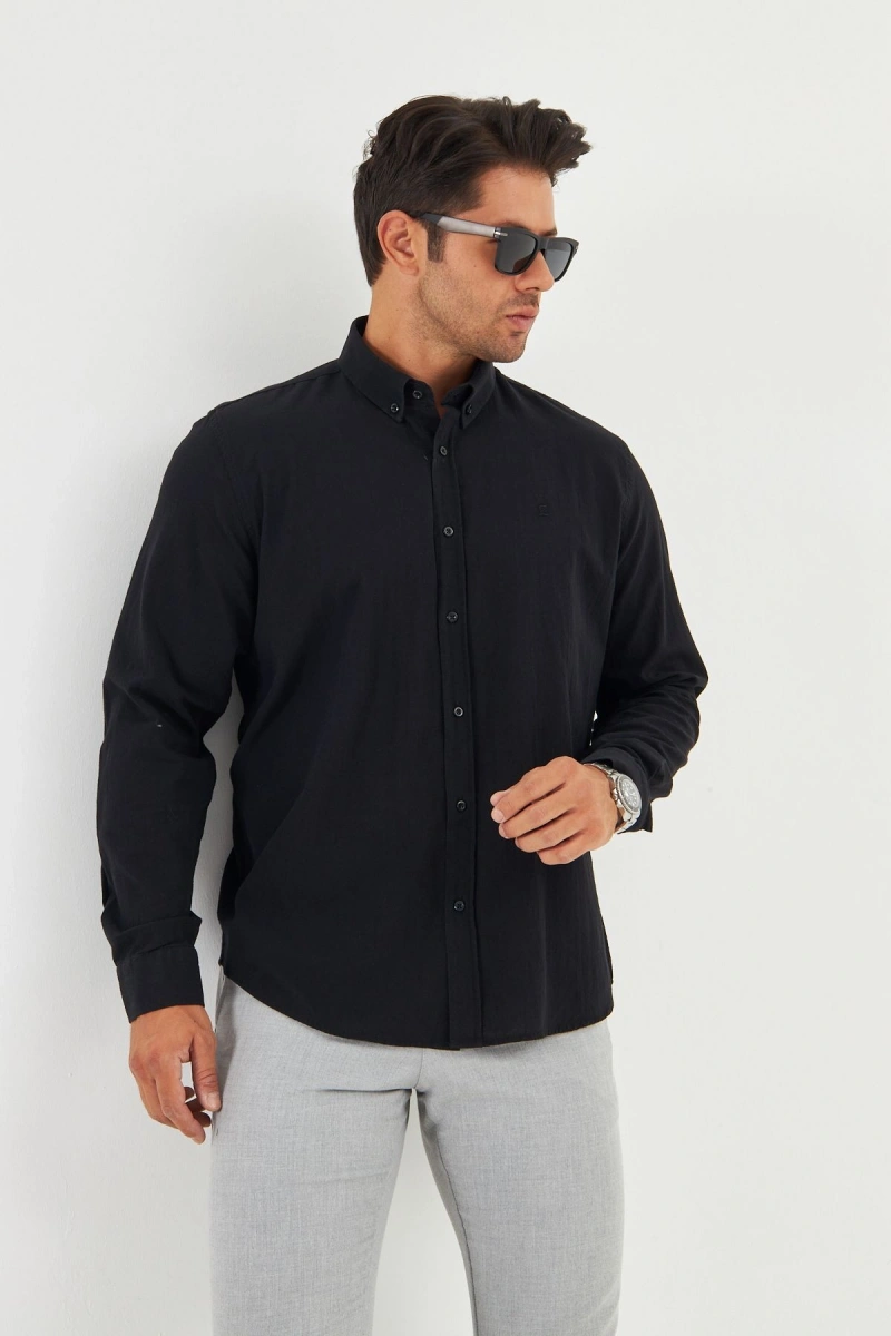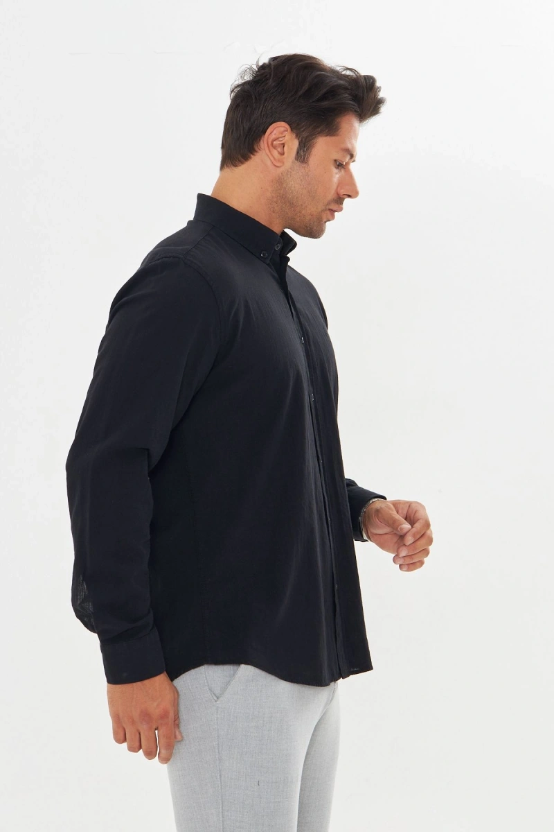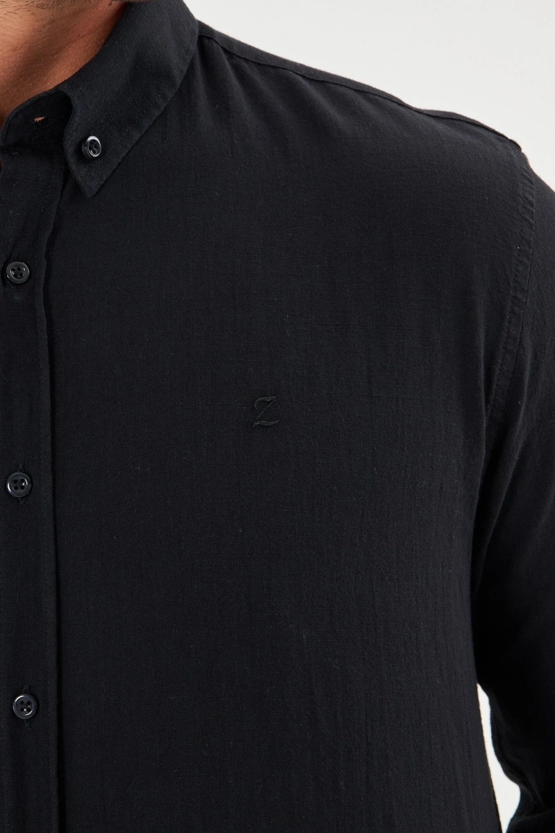 Erkek Zend Club Regular Fit Yazlık Keten Gömlek Siyah