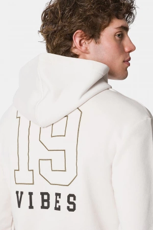 İçi Polarlı Kapüşonlu Erkek Sweat Krem