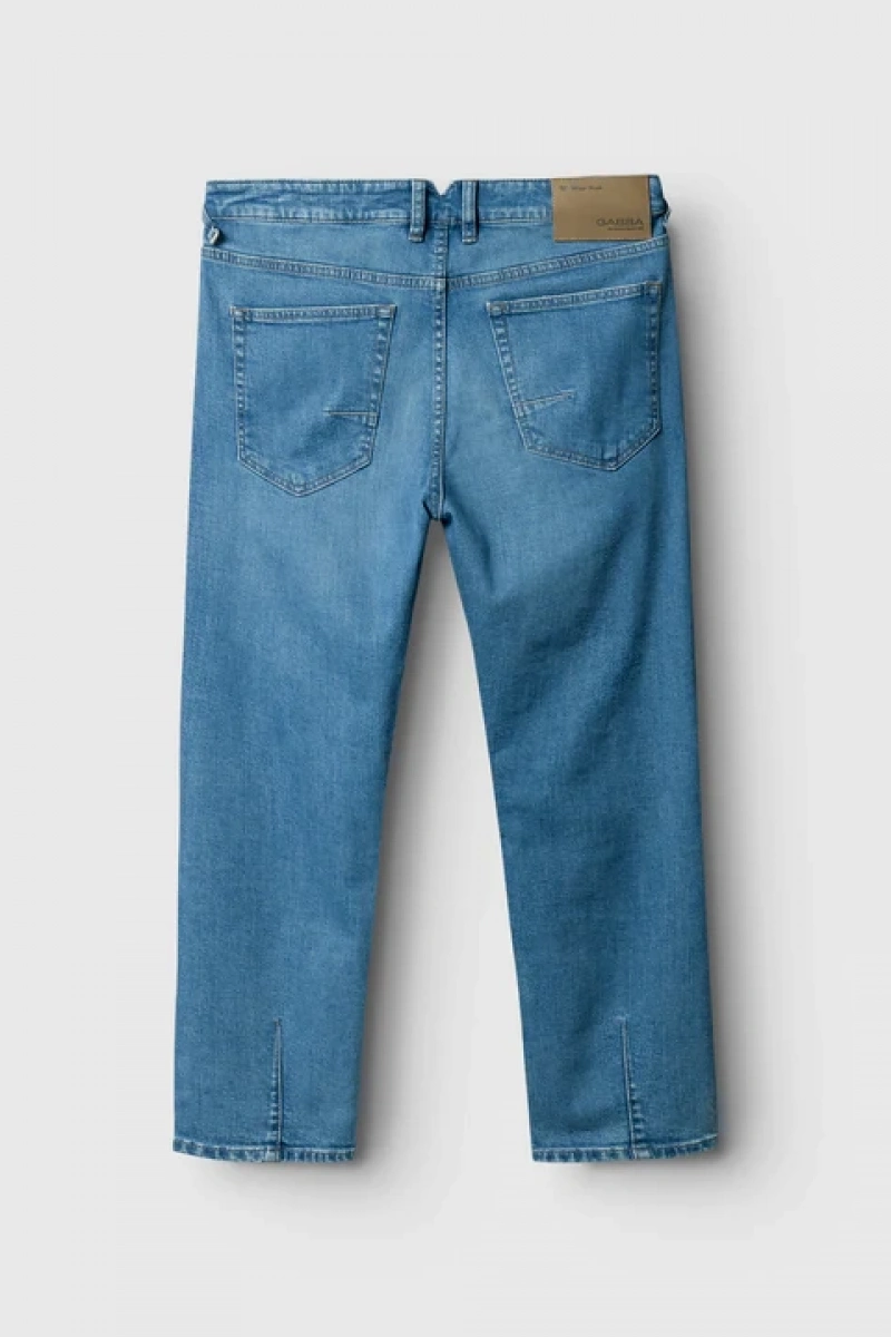 %99 Pamuk, %1 Elastan Gabba markasının yeni koleksiyonundan erkek yıkanmış kot pantolon. Pantolona daha şehirli bir estetik kazandıran dış cepleri ve dikişleri bulunmaktadır. Gabba markasının logosu, pantolonun arka cebindeki deri bir yamaya dikilmiş ve tüm metal detaylara kabartma olarak işlenmiştir. Pamuklu, elastik kumaştan üretilmiştir.