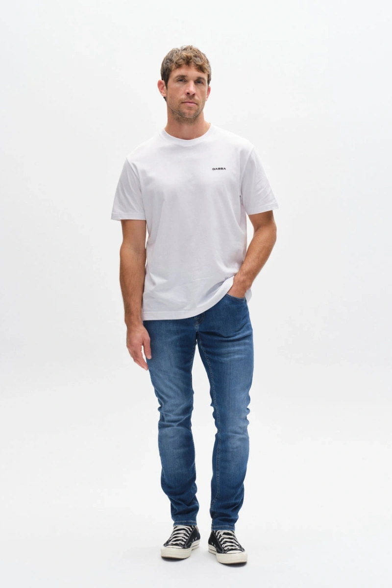 %99 Pamuk, %1 Elastan Gabba markasının yeni koleksiyonundan erkek yıkanmış kot pantolon. Pantolona daha şehirli bir estetik kazandıran dış cepleri ve dikişleri bulunmaktadır. Gabba markasının logosu, pantolonun arka cebindeki deri bir yamaya dikilmiş ve tüm metal detaylara kabartma olarak işlenmiştir. Pamuklu, elastik kumaştan üretilmiştir.