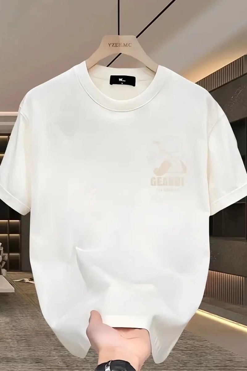 Geniş Kesim Pamuklu Tişört - "GANDHI The Project" Baskılı, Beyaz, Rahat Kesim, Kısa Kollu, Günlük Kıyafet, Her Gün Giyilebilecek Tişört- Beyaz