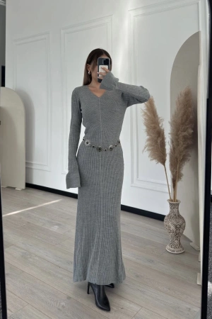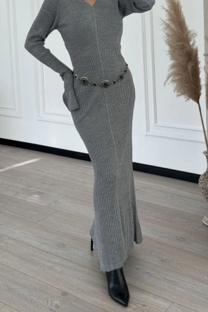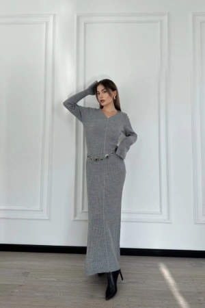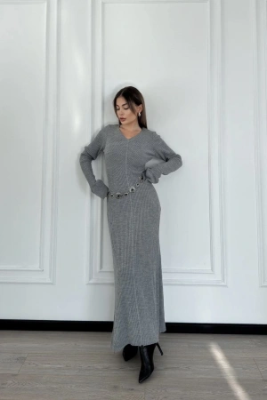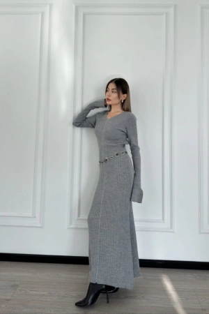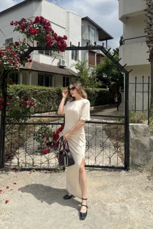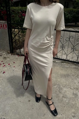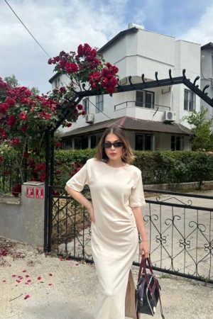Göğüs ve Yanlar dekolteli Kolsuz Boy Elbise - Beyaz