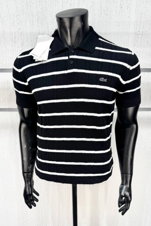 Erkek Polo Yaka Düğmeli Kısa Kollu Çizgili Triko Siyah