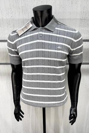 Erkek Polo Yaka Düğmeli Kısa Kollu Çizgili Triko Gri