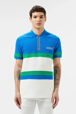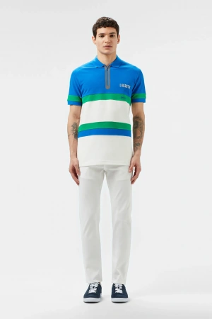 Erkek Regular Fit Yarım Fermuarlı Renk Bloklu Beyaz Polo Tişört