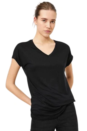 Kadın V Yaka Basic Pamuklu T-Shirt Siyah