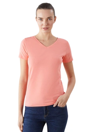 Kadın V Yaka Basic Pamuklu T-Shirt Toz Pembe