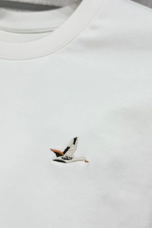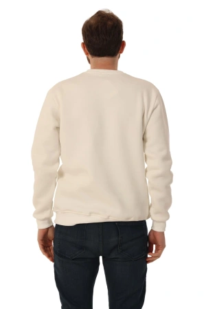 Erkek Bisiklet Yaka Regular Kalıp Logolu Sweatshirt Beyaz