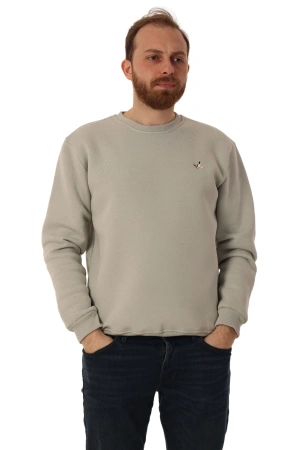 Erkek Bisiklet Yaka Regular Kalıp Logolu Sweatshirt Gri