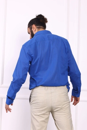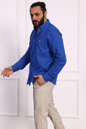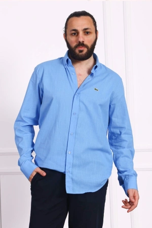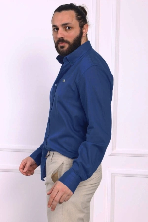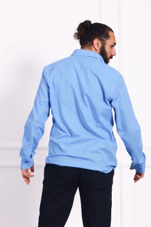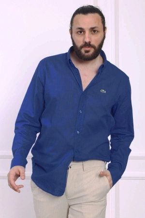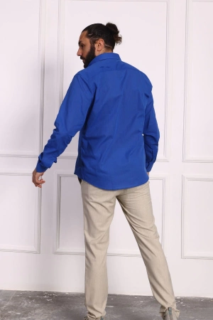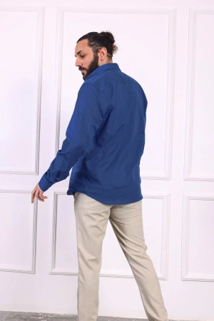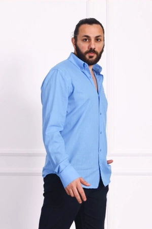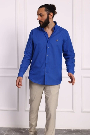Erkek Regular Fit Yazlık Keten Gömlek Saks Mavisi