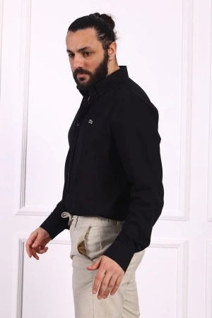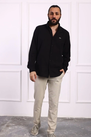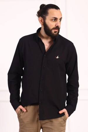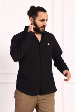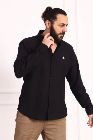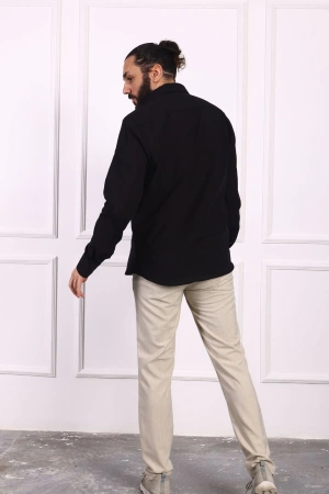 Erkek Regular Fit Yazlık Keten Gömlek Siyah