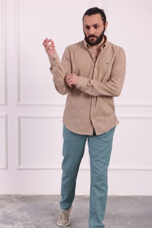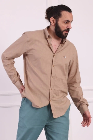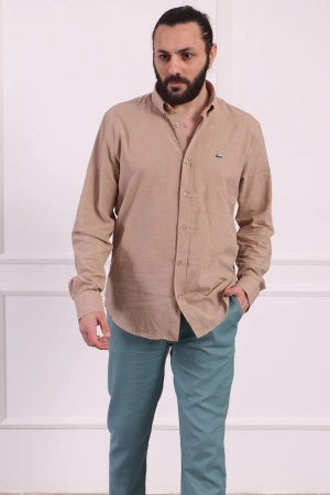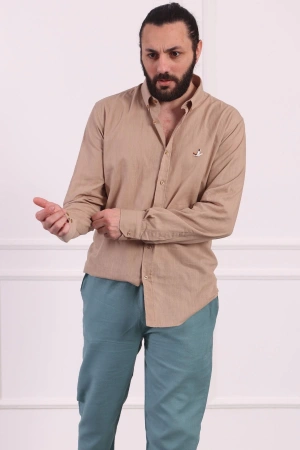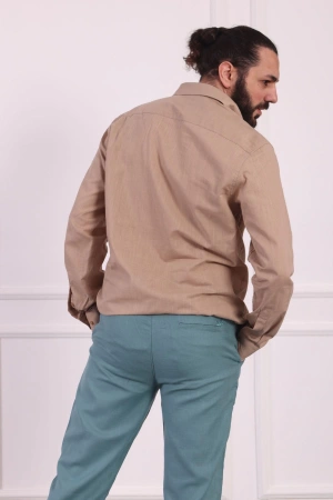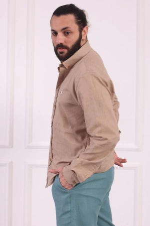 Erkek Regular Fit Yazlık Keten Gömlek Vizon