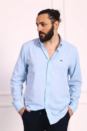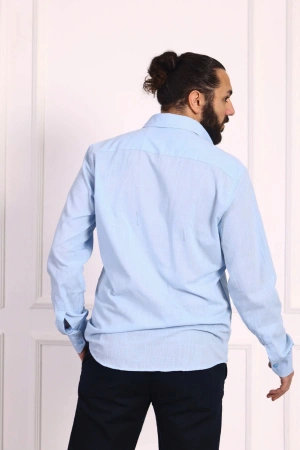 Erkek Regular Fit Yazlık Keten Gömlek Açık Mavi