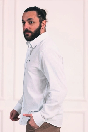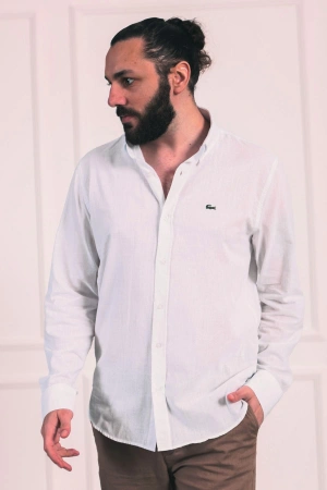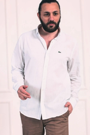 Erkek Regular Fit Yazlık Keten Gömlek Beyaz