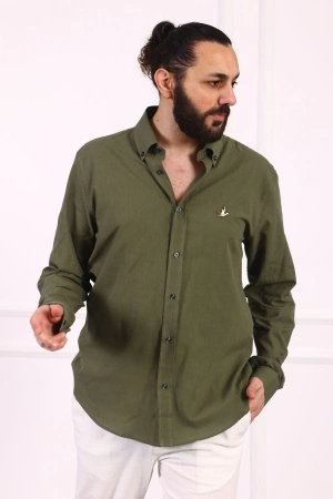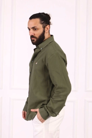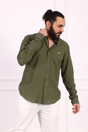 Erkek Regular Fit Yazlık Keten Gömlek Haki Yeşil