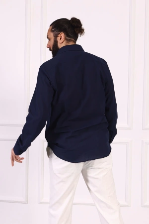 Erkek Regular Fit Yazlık Keten Gömlek Lacivert