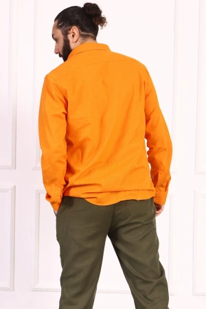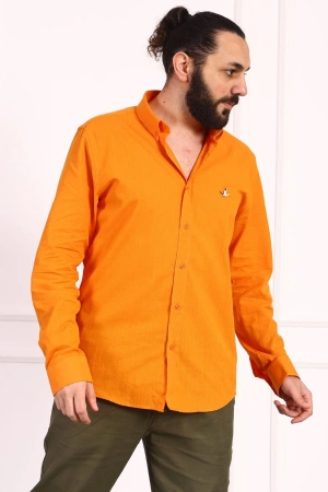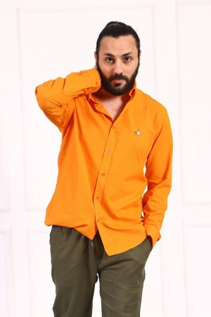 Erkek Regular Fit Yazlık Keten Gömlek Turuncu