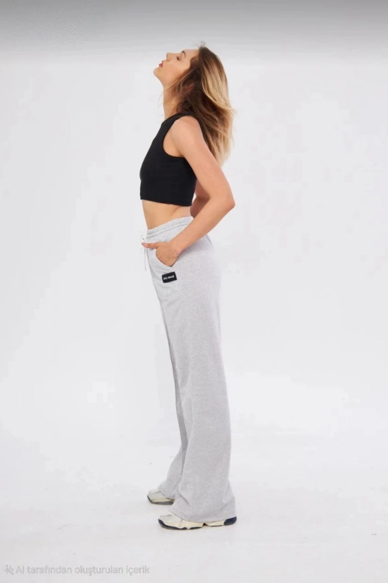 İki iplik Bol Paça Eşofman Pantalon - Gri