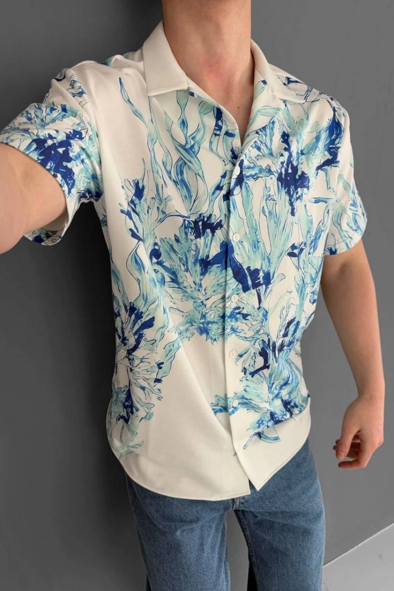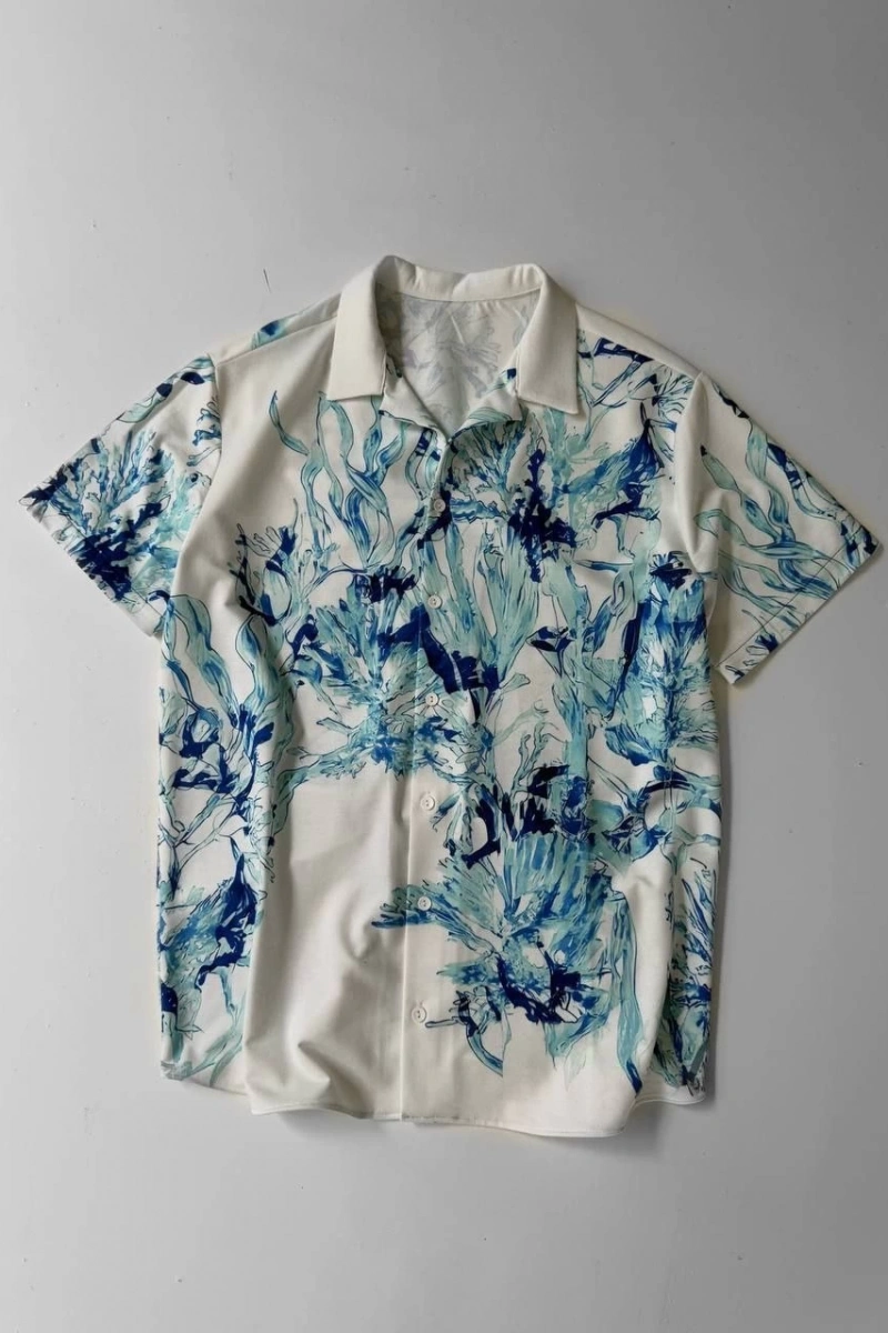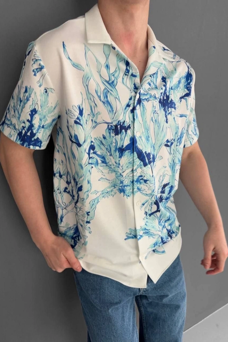 İki İplik Kumaş Baskılı Gömlek - Beyaz